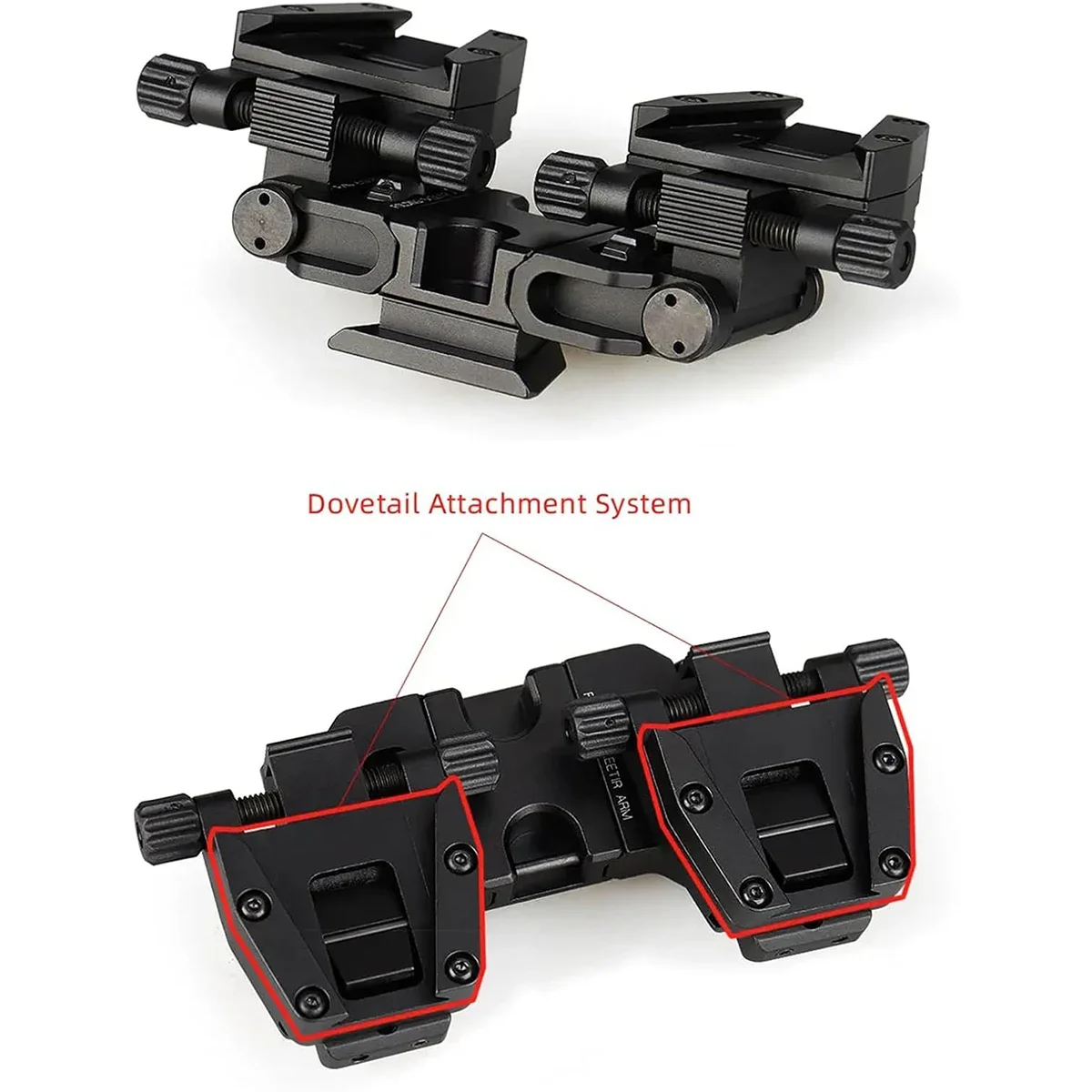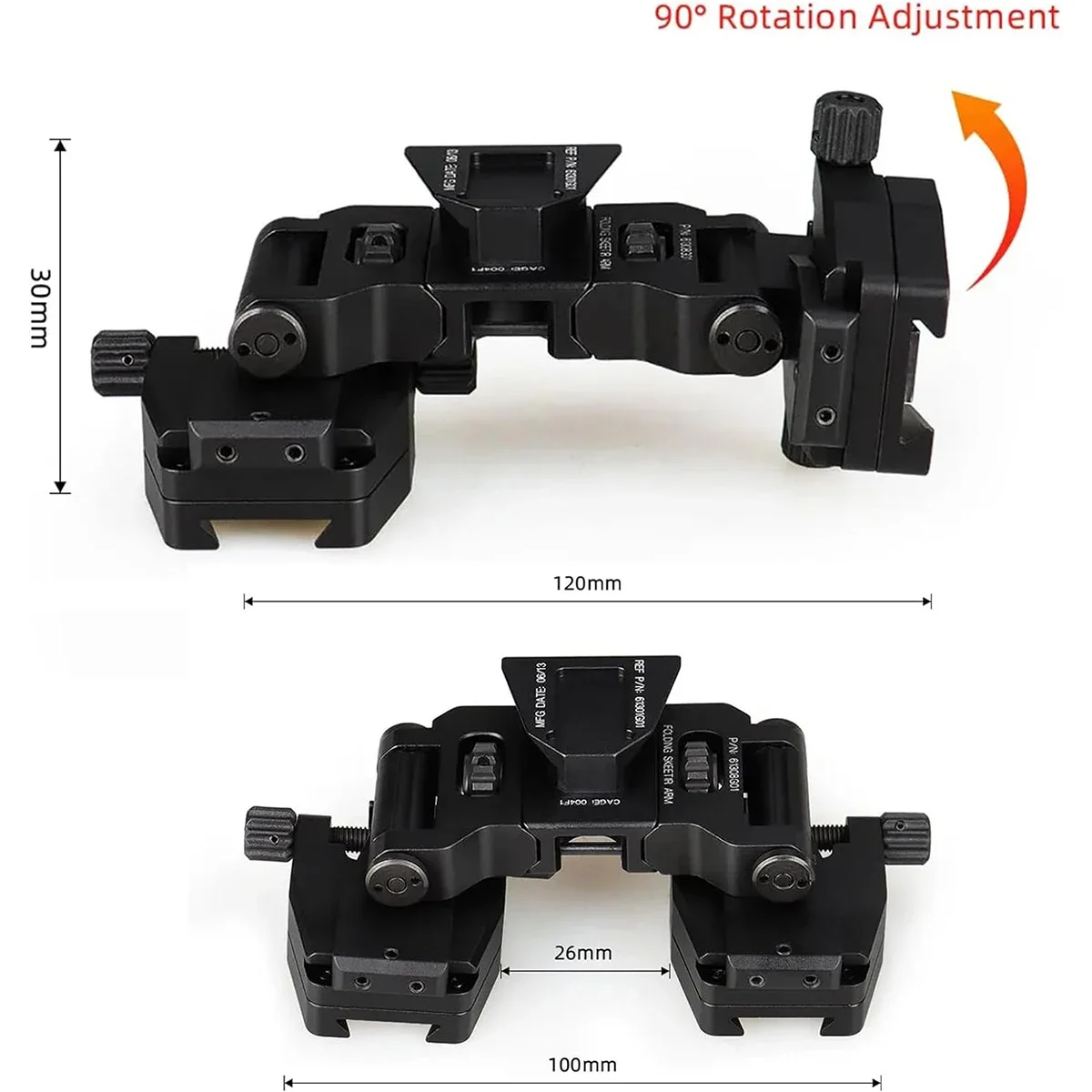 El Bin-Bridge para BAE SanganeseIRx y PVS-14 proporciona al operador la capacidad de utilizar estos dispositivos como monocular o binocular.El puente SiliceIRx encaja en nuestro soporte NVG G24 estándar y proporciona una plataforma de montaje sólida y varios puntos de ajuste para un ajuste preciso.El puente SitioIRx también permite al operador levantar el térmico/NVG contra el casco cuando no está en uso y puede cambiar entre las diferentes opciones de montaje sin necesidad de herramientas especiales o tener que quitar el soporte del casco 6061-T6, MIL-SPEC Tipo III Anodizado duro