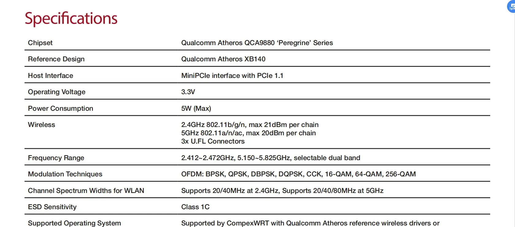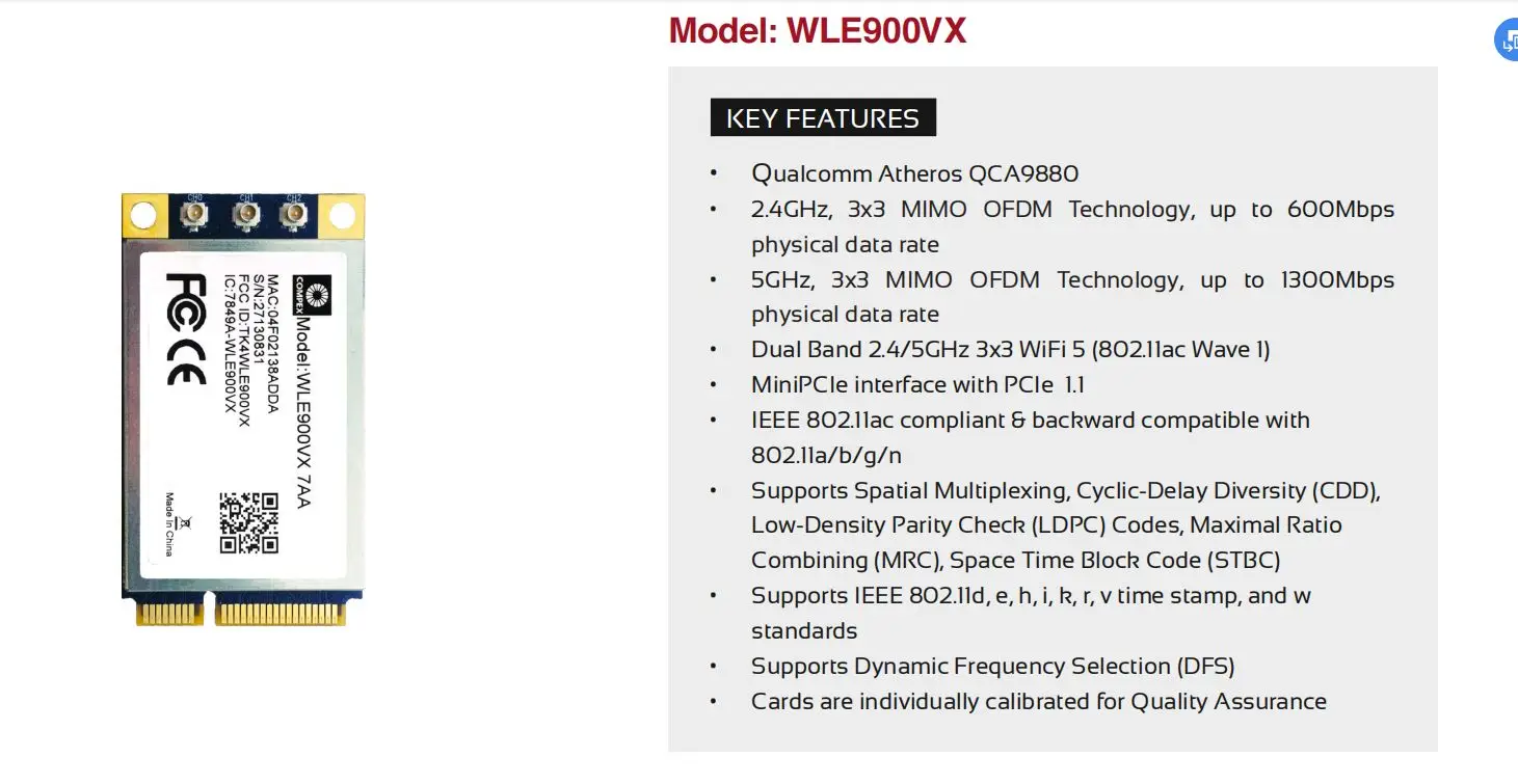 Soporta hasta 256 QAM, WLE900VX con su capacidad MIMO, es una solución perfecta para aplicaciones o dispositivos empresariales, industriales, de ciberseguridad, de transporte y SMB. Con Compex actuando como un fabricante de valor agregado, y con la amplia experiencia de Compex con la unidad de código abierto ath10k y el controlador de código cerrado patentado de Qualcomm QSDK, WLE900VX no se limita a trabajar solo en el ecosistema de Qualcomm, sino también en plataformas de terceros como Intel x86 y otros procesadores ARM como NXP y Marvell.
