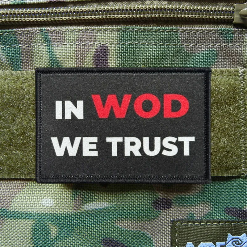 En WOD, confiamos en la impresión, parche táctico para chaleco, insignia de moral de gancho y bucle, pegatinas decorativas para mochila, parches para brazalete para ropa