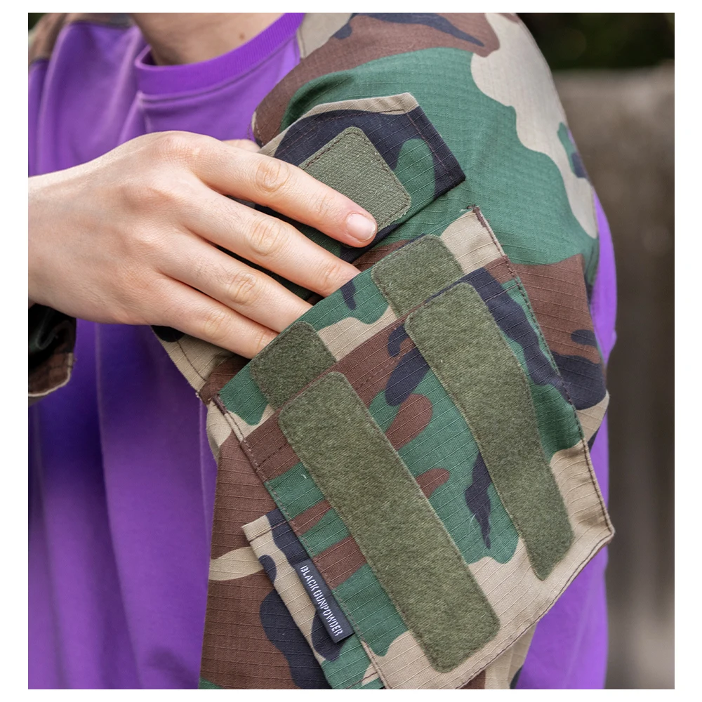 Tela: Manga 65/35 poliéster algodón + cuerpo tejido de fibra de poliéster