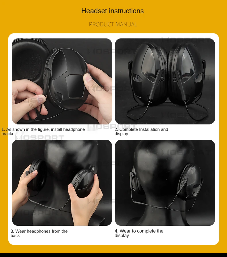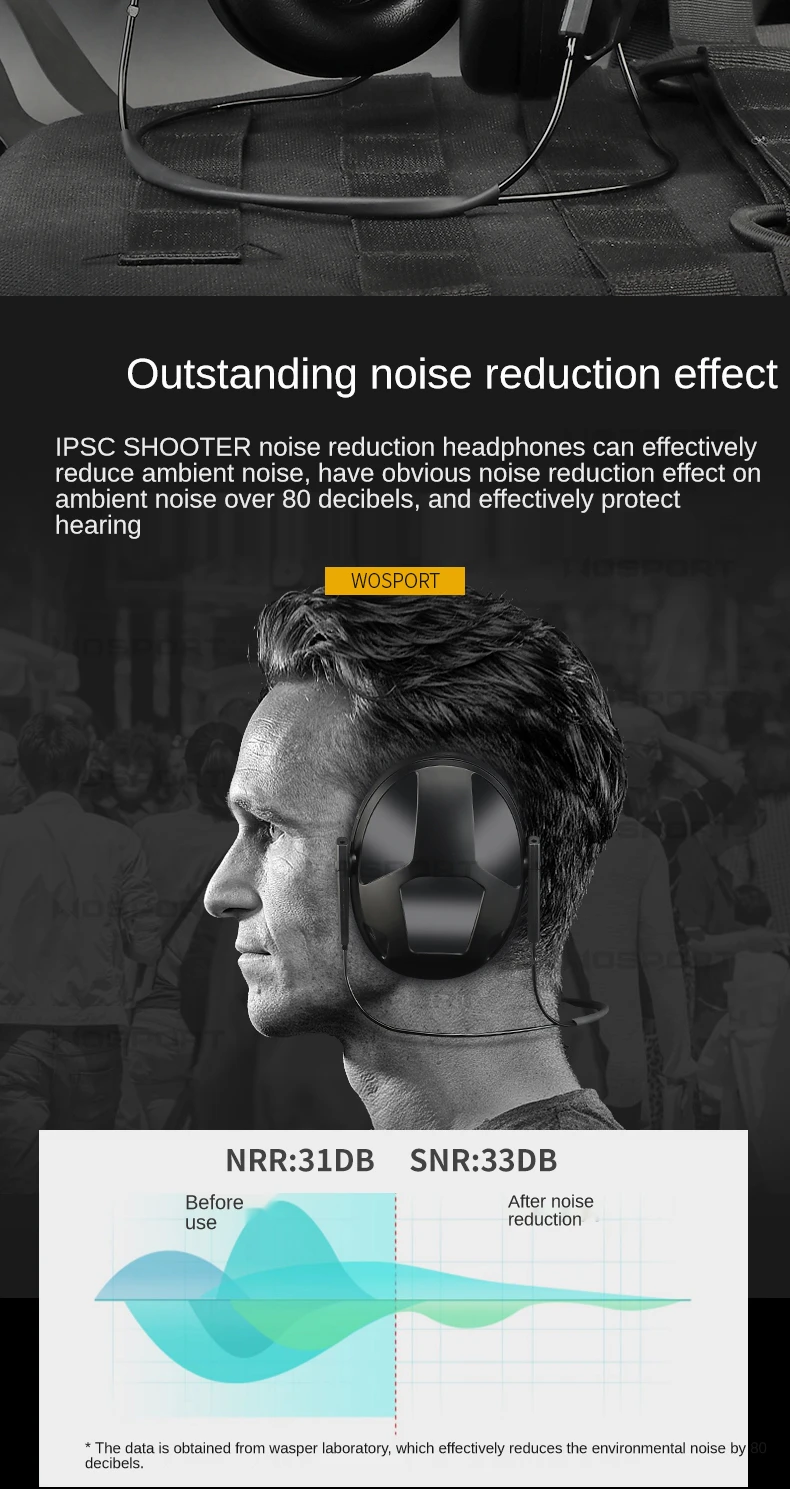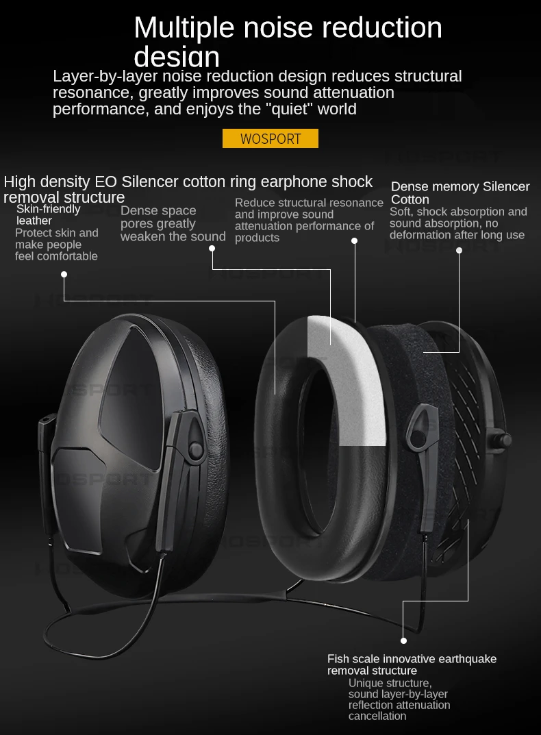 Marca del producto: auriculares con reducción de ruido montados en la parte trasera de wosportosport