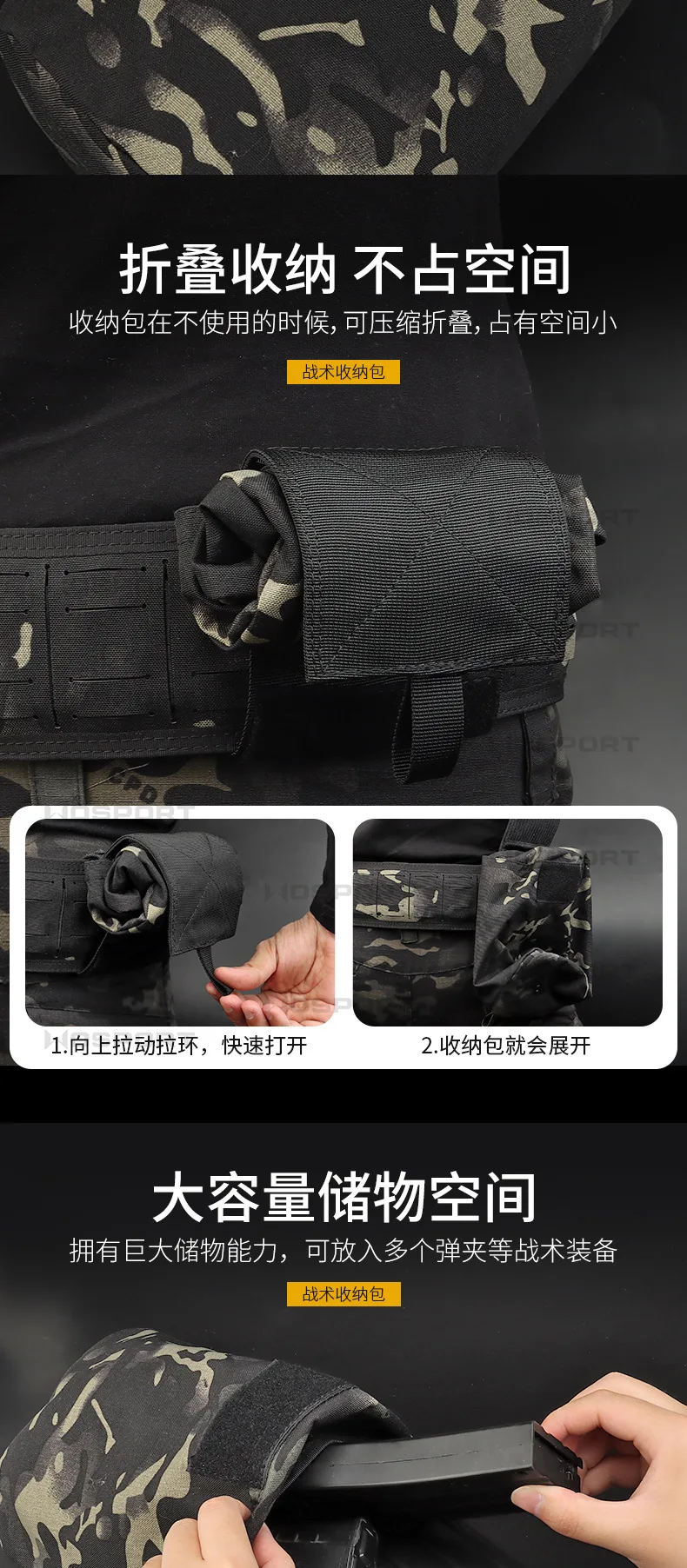 WoSporT-Bolsa de almacenamiento de artículos diversos para deportes al aire libre, riñonera multifuncional de gran capacidad, bolsa de almacenamiento táctica de camuflaje