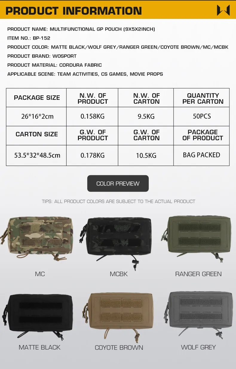 Wosport bolsa táctica compatible con MOLLE GP, accesorios de caza al aire libre, accesorio de riñonera multifuncional duradero