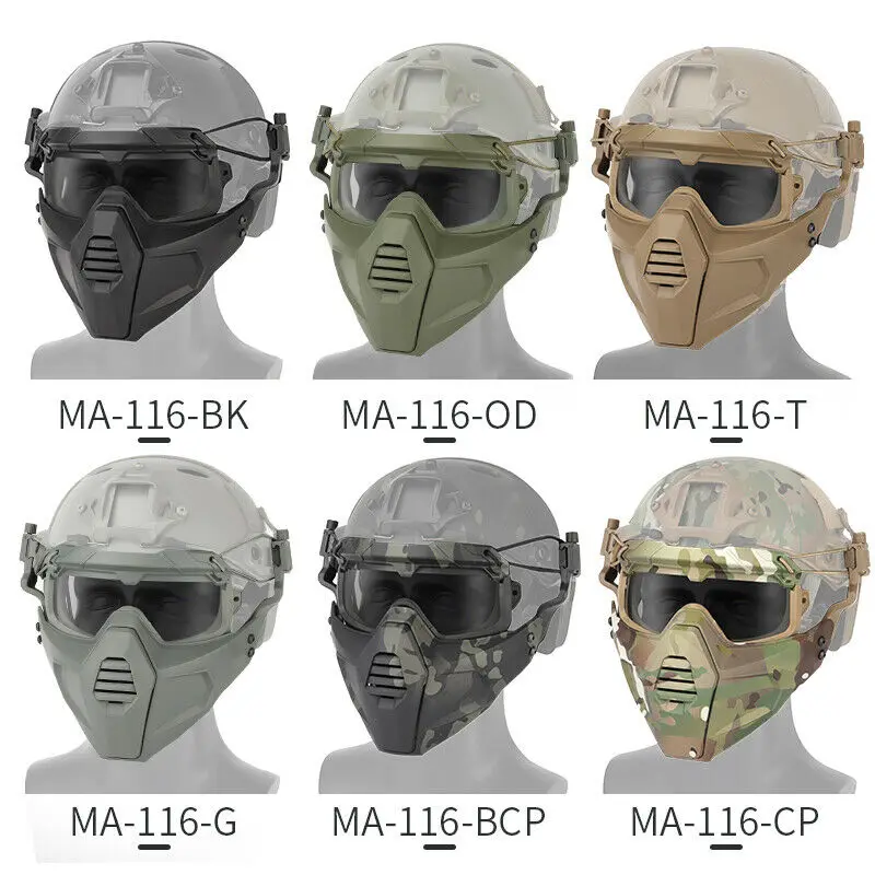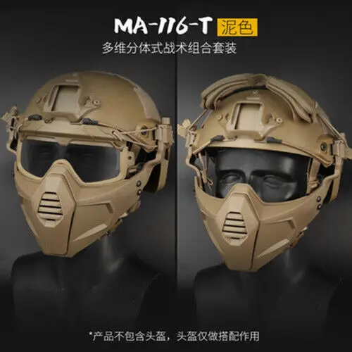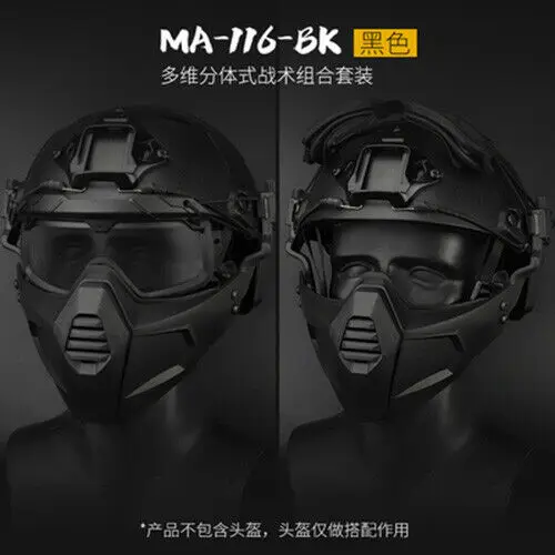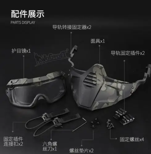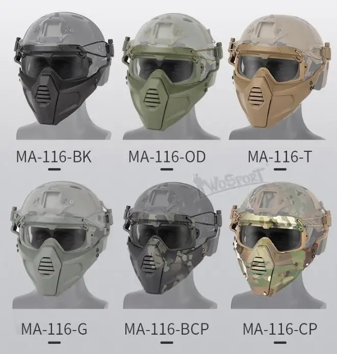 WOSPORT casco táctico tipo dividido, máscara de media cara y gafas de seguridad, lente y conjunto