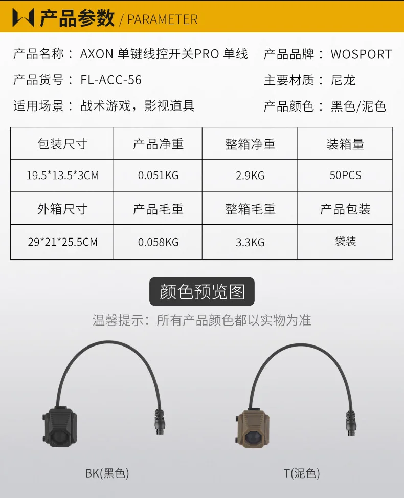 WOSPORT Interruptor controlado por cable de una sola tecla pro de un solo cable