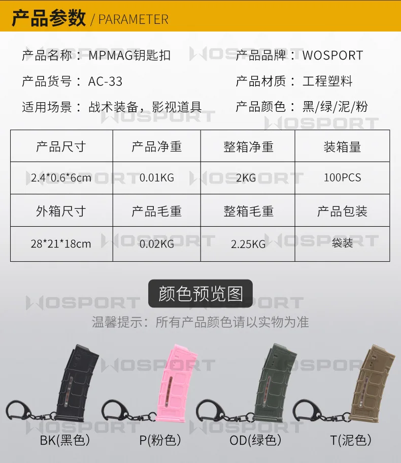 WOSPORT-llavero de modelo táctico MPMAG, colección de engranajes, mochila decorativa, adorno de encanto