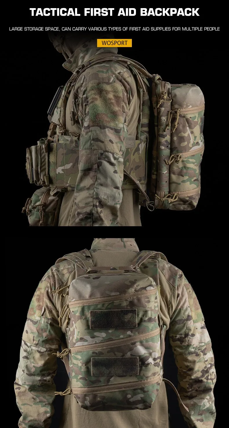 WOSPORT Mochila grande de primeros auxilios, ligera, duradera, resistente al desgarro, organizador médico, diseño táctico, preparación para desastres