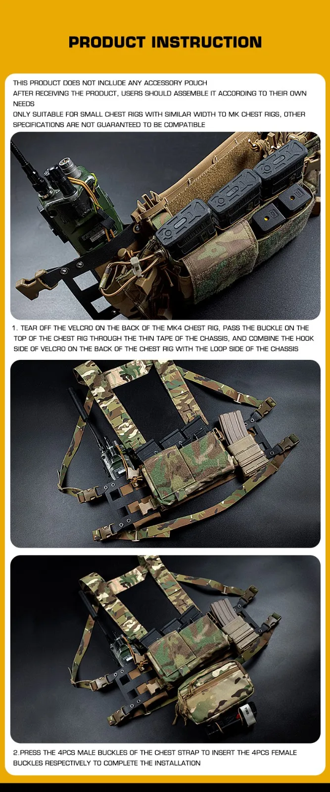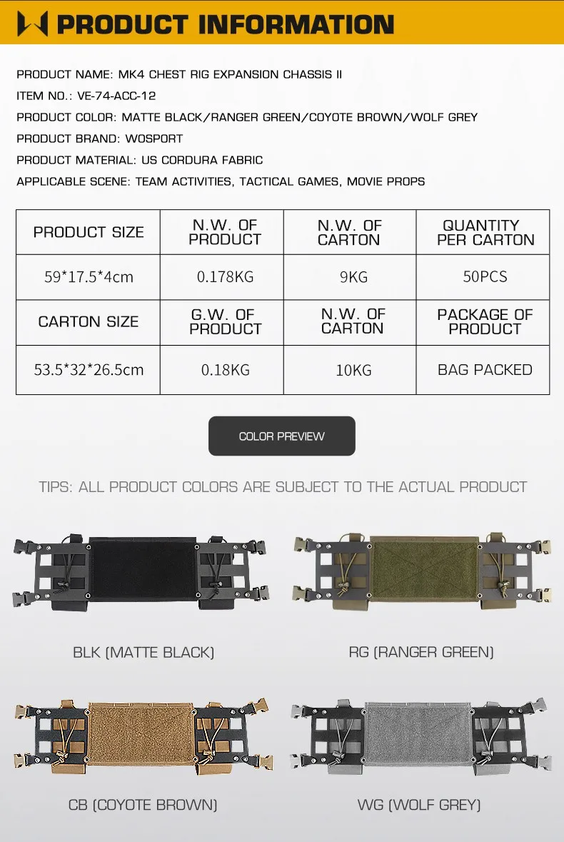 Wosport-placa de montaje de carga Molle multifunción, paquete de montaje de herramienta táctica Mk4, montaje de pecho, chasis extendido Ii