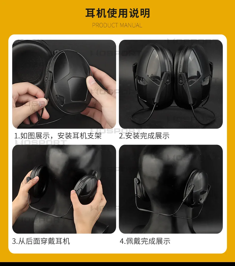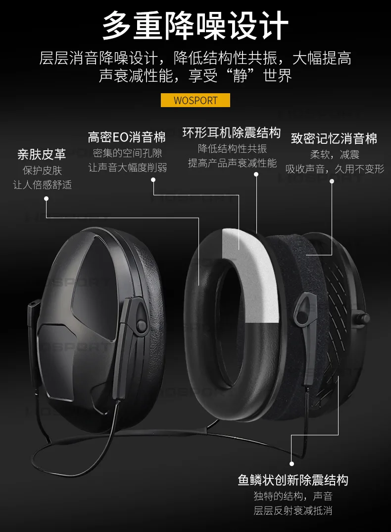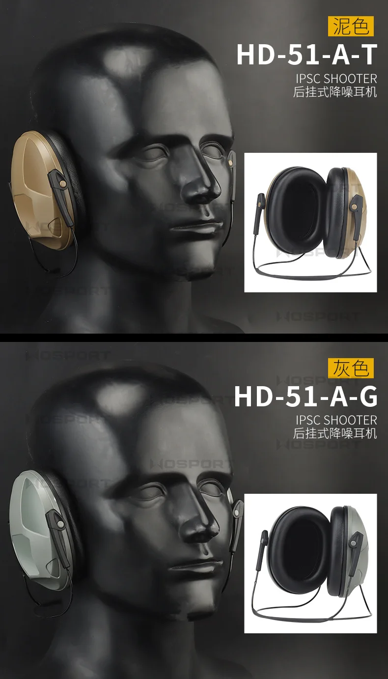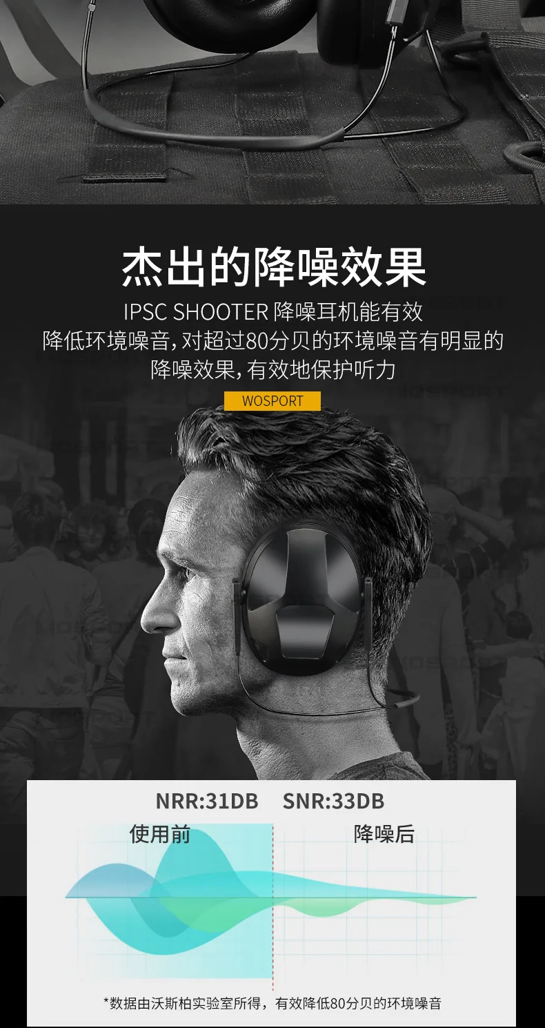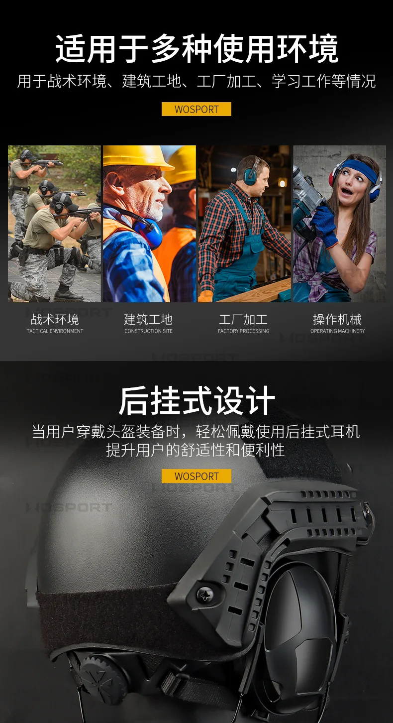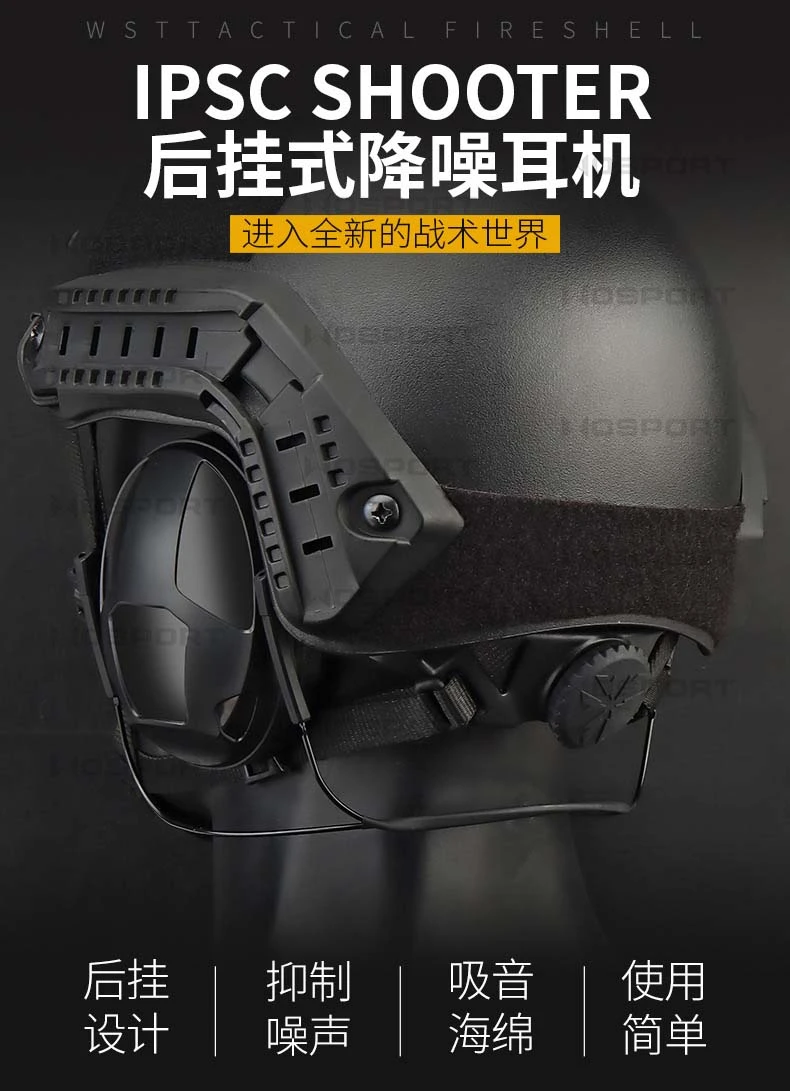 WOSPORT-Protectores de oídos de camuflaje táctico IPSC, cascos con cancelación de ruido y montado en la parte trasera