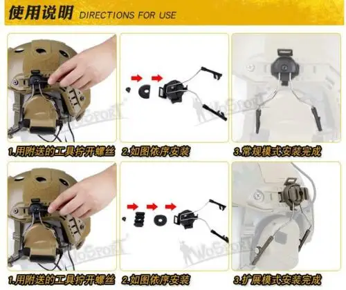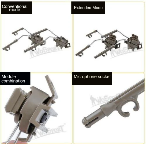 WoSporT-riel de guía para casco táctico de caza, adaptador de auriculares, soporte con riel extensible