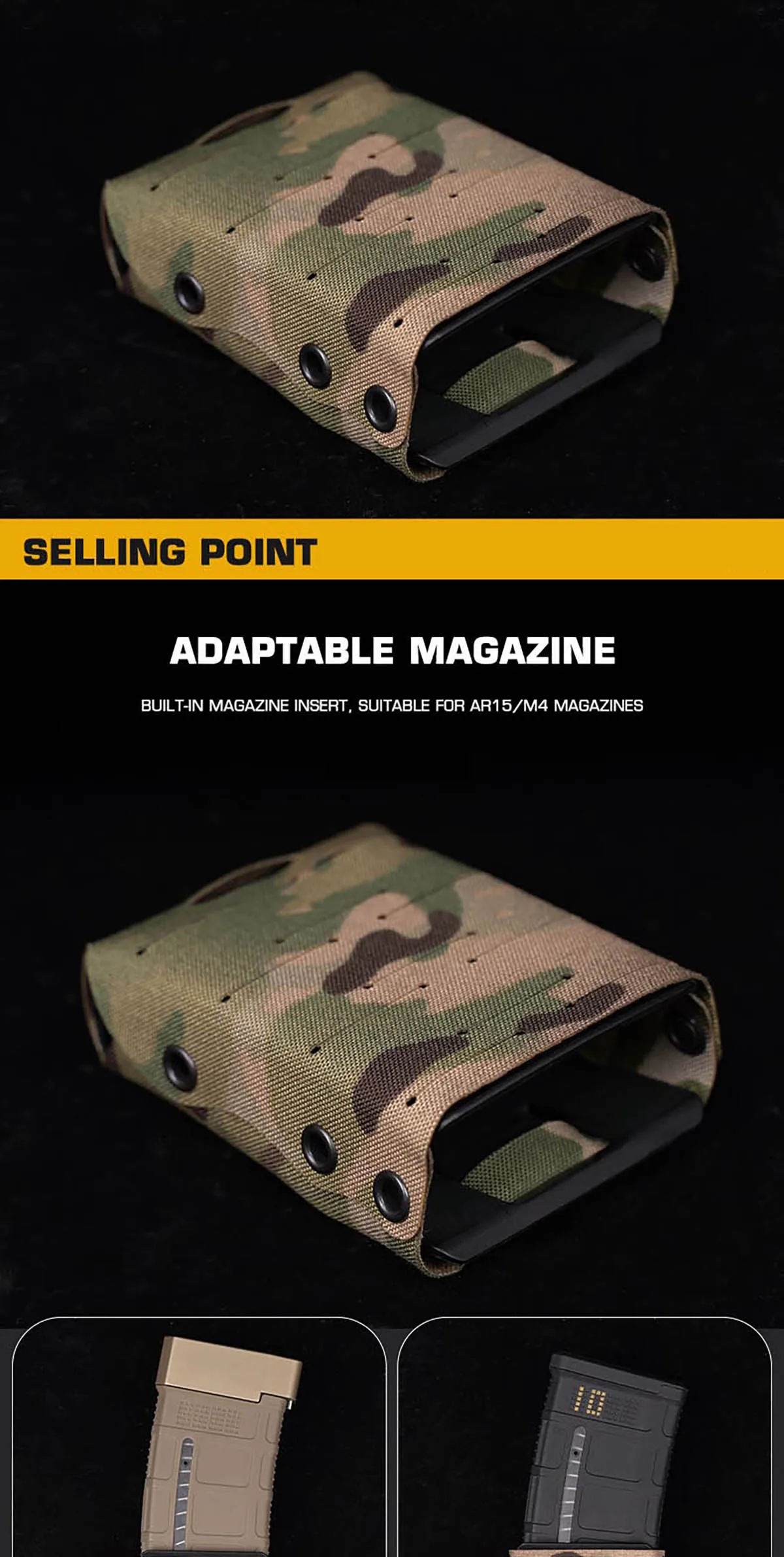 Inserto de cargador incorporado para mordazas AR-15/M4: Viene con un inserto de cargador rígido integrado diseñado específicamente para sostener de forma segura cargadores de rifle con plataforma AR-15/M4 5.56.Garantiza que su revista permanezca firmemente en su lugar durante una actividad vigorosa al tiempo que permite un sorteo suave y positivo.