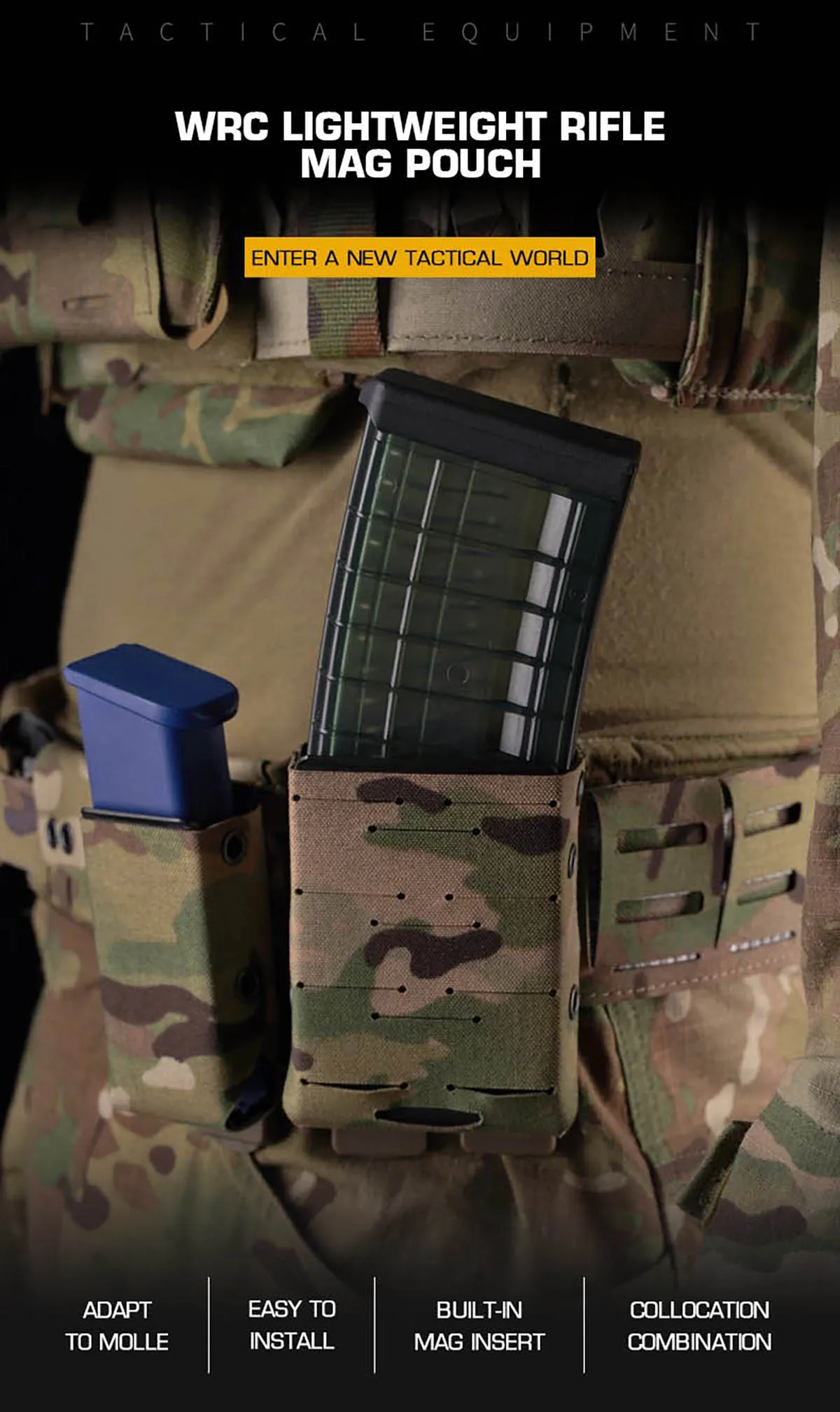 Sistema modular y combinado: Diseñado como parte del ecosistema modular WRC, esta bolsa para cargadores de rifle se puede usar junto con bolsas para cargadores de pistola de la misma serie.Esto le permite crear una carga cohesiva y personalizada en su portaplacas o cinturón, mezclándose y combinando para satisfacer las exactas necesidades de su misión.