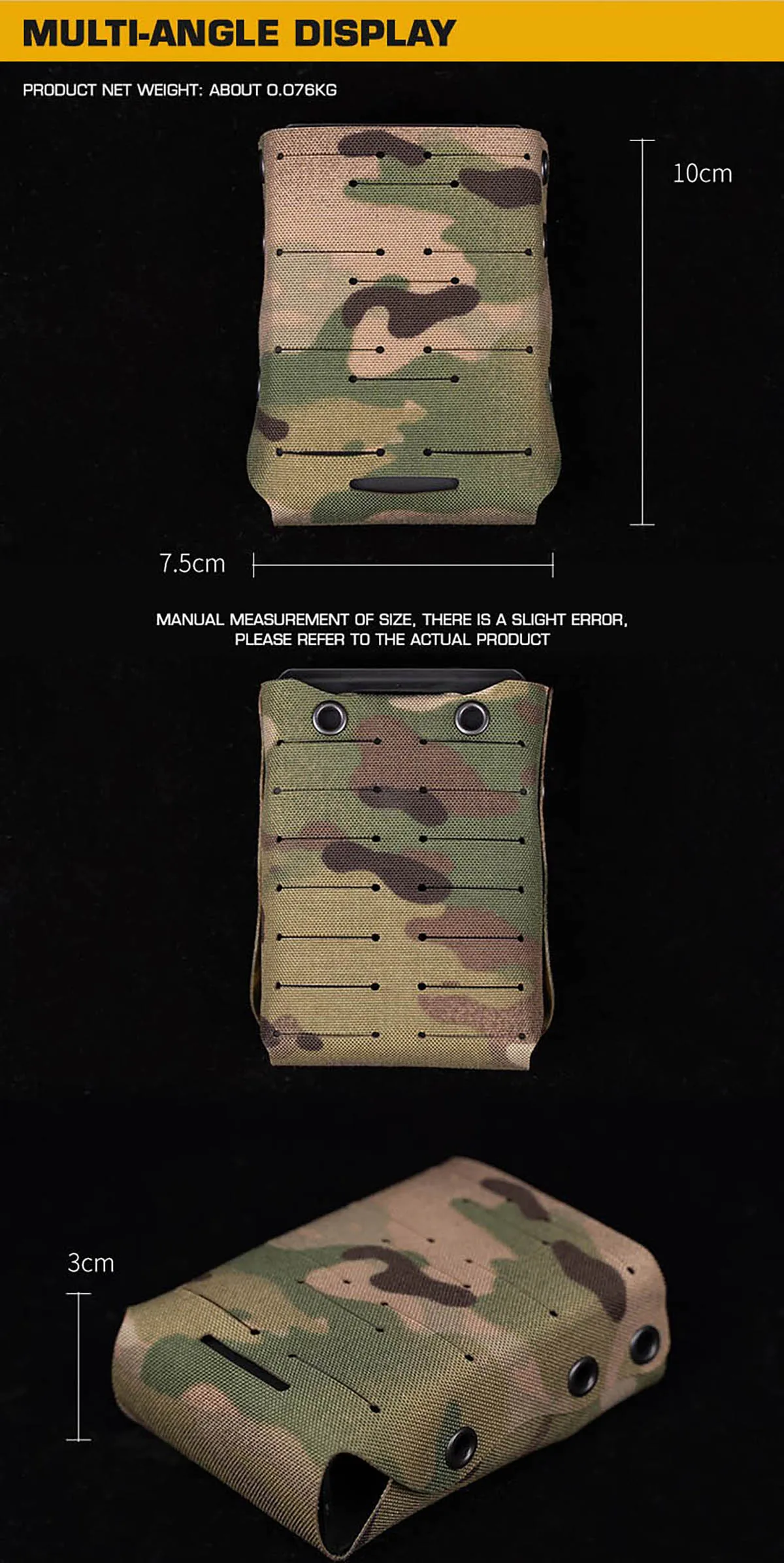 Diseño ultraligero y compacto: con un incrivelmente ligero 0.076kg y dimensiones de aproximadamente 10cm (H) x 7.5 cm (ancho) x 3 cm (profundidad), esta bolsa agrega una capacidad crítica de municiones de rifle a su kit sin agregar volumen o peso notables, perfecta para configuraciones estilizadas y de alta movilidad.