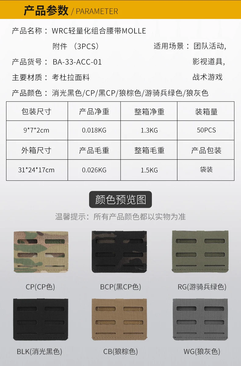 WRC cinturón de camuflaje Molle ligero, accesorios de combinación, 3 piezas, fácil de instalar para extensión Molle