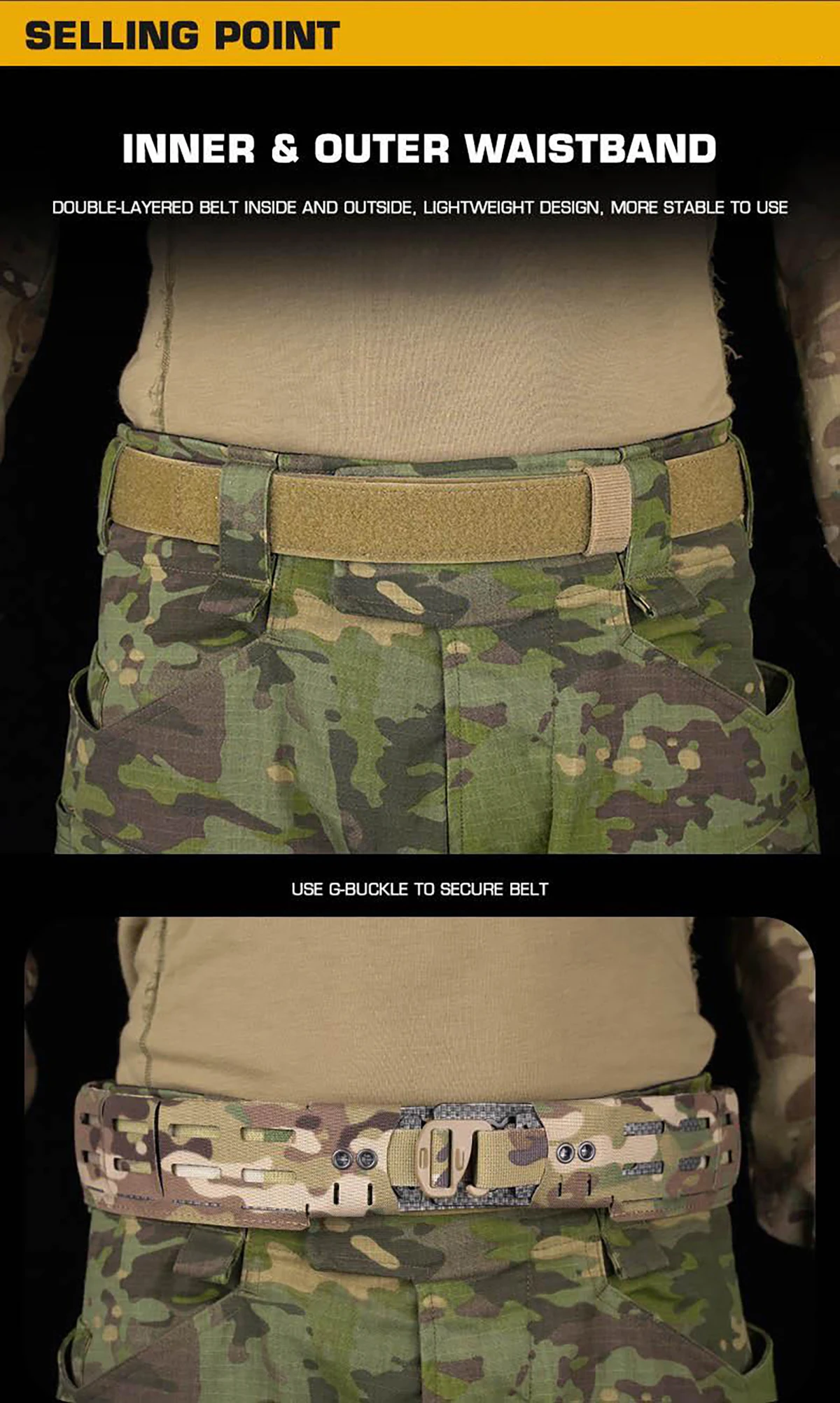 Máxima estabilidad con diseño de 2 piezas: experimente un carro de engranajes sólido como una roca.El sistema combina un cómodo cinturón interior (uso mediante trabillas para los pantalones) y un robusto cinturón exterior de batalla.El cinturón exterior se sujeta de forma segura al cinturón interior mediante hebillas en G integradas en ambos extremos (como se muestra en uso), evitando cualquier rotación o hundimiento, incluso bajo cargas pesadas.El cinturón interior también puede servir como cinturón EDC independiente.