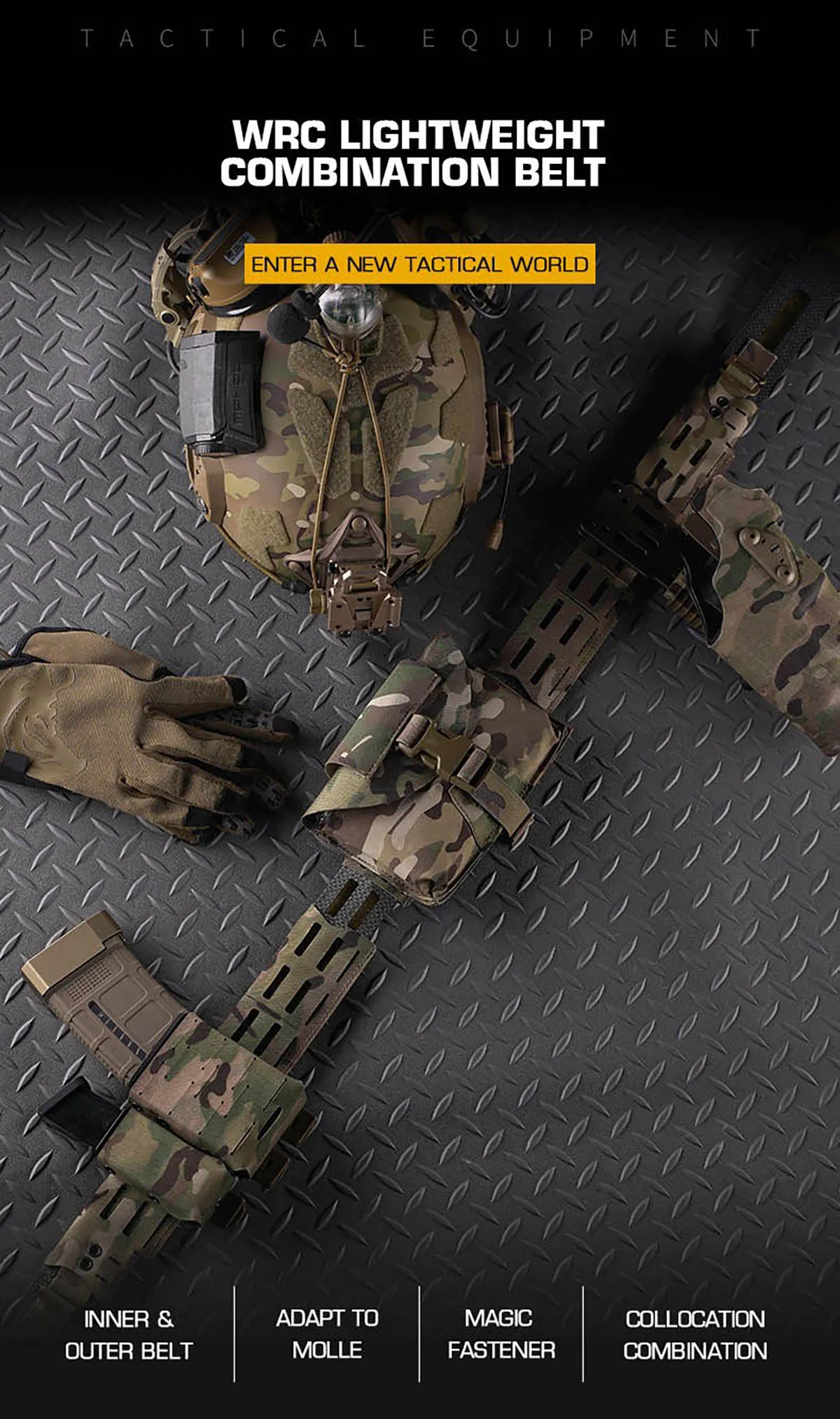 ENTERA UN NUEVO MUNDIAL TÁCTICO con el cinturón combinado liviano WRC.Este sistema de correa modular de calidad profesional redefine la estabilidad y la personalización de la carga.Con un diseño de cinturón interior y exterior seguro, compatibilidad MOLLE total y la opción de fijación con hebilla G o hebilla Cobra, proporciona una base incomparable para airsoft, entrenamiento táctico, servicio de aplicación de la ley y uso profesional.