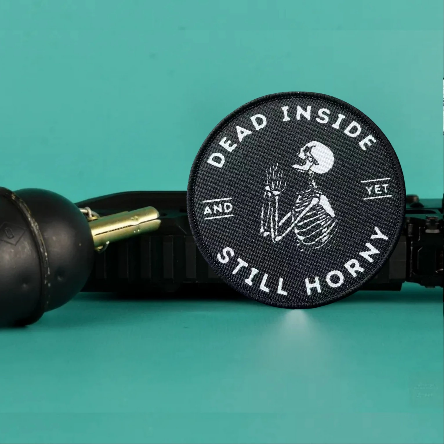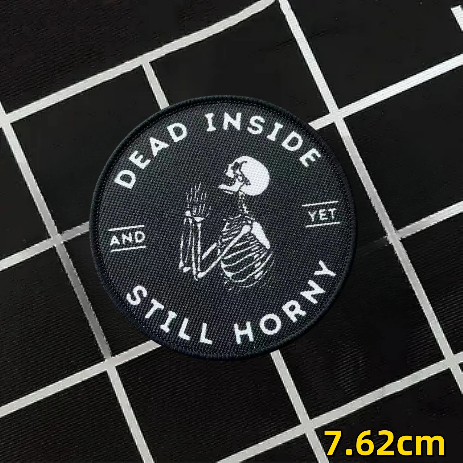 ¡WTF! Insignia de moral americana Dead Inside Yet Still Horny Skull Parches tácticos Brazalete Impresión Gancho y bucle Mochila Pegatina