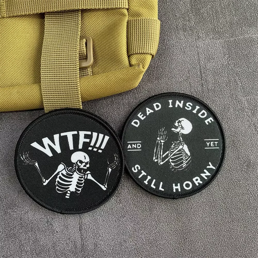 ¡¡¡WTF!!! Parche divertido Dead Inside Yet Still Horny con estampado de calavera, gancho y bucle, insignia de moral, accesorios para pegatinas de mochila táctica