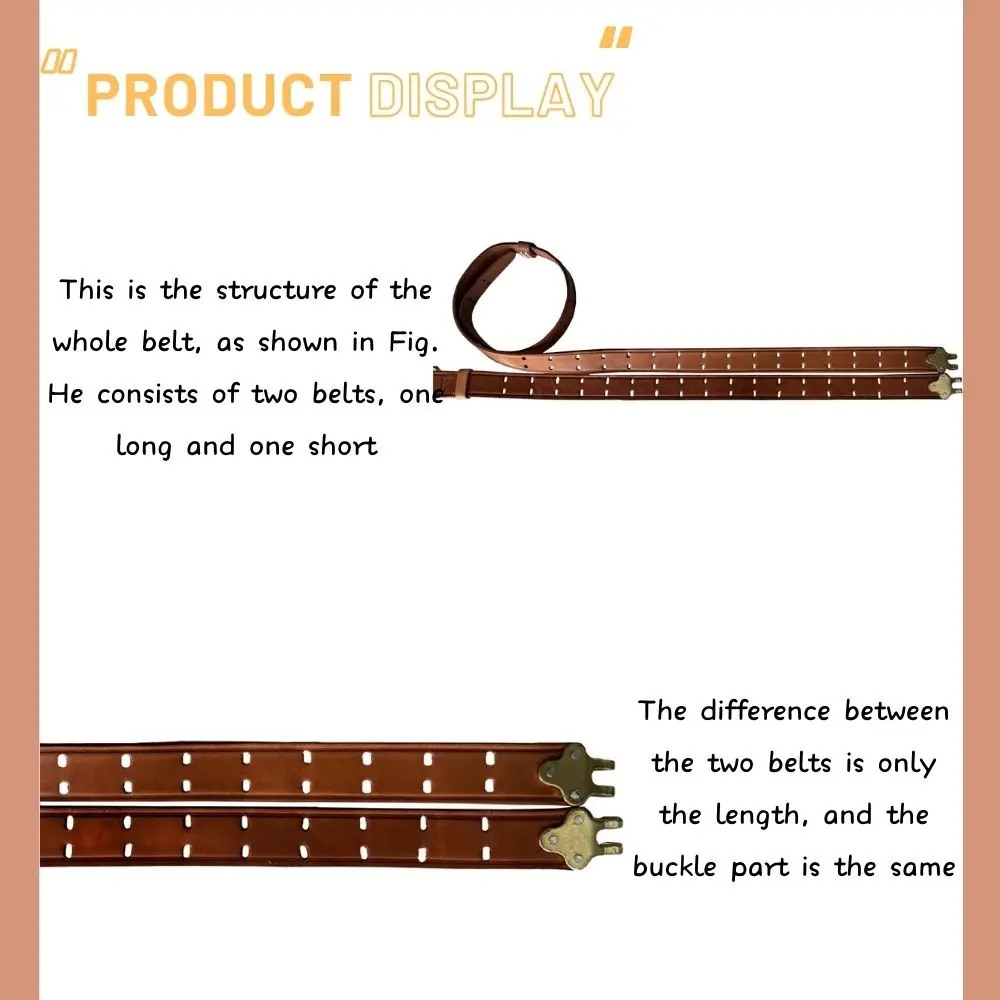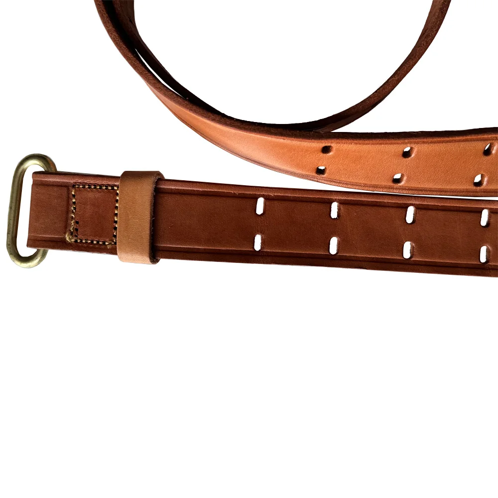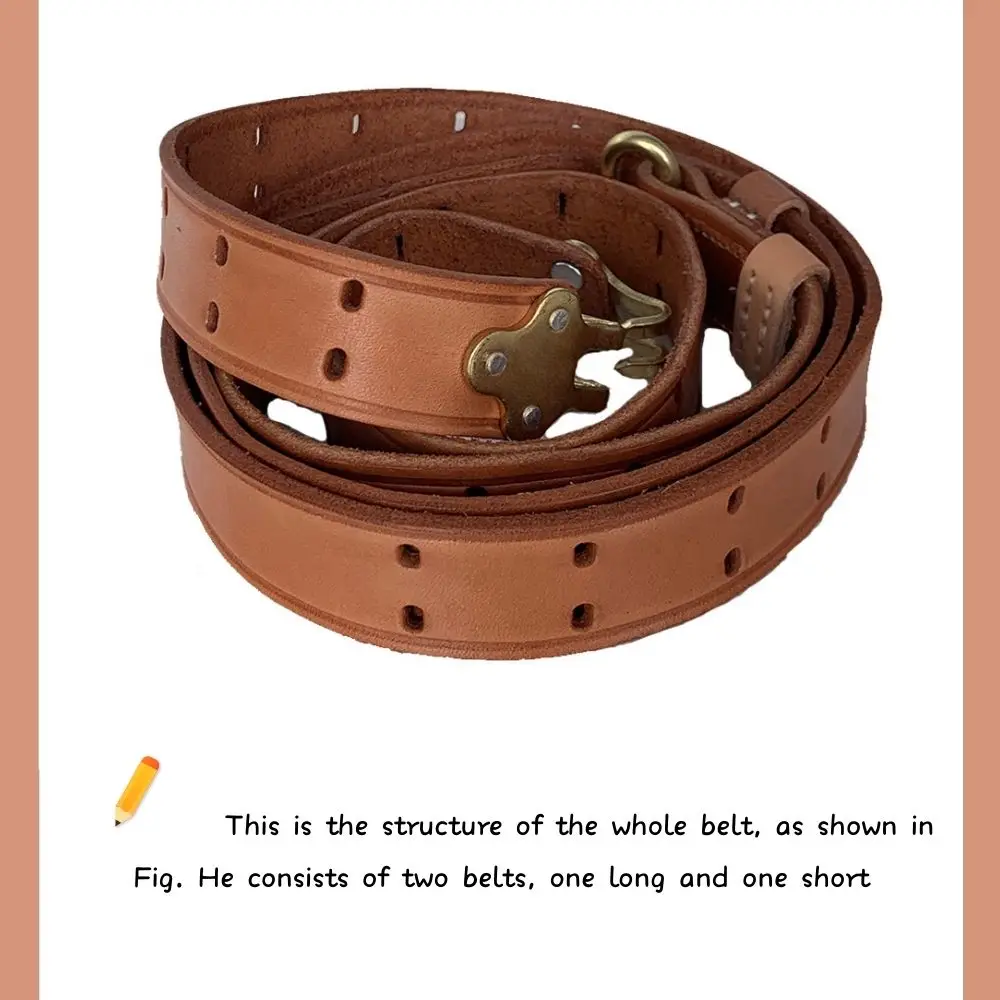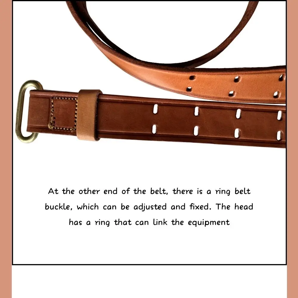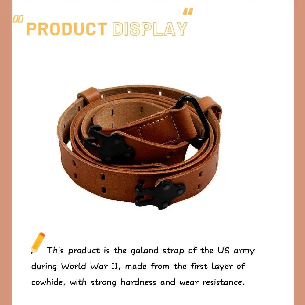 Este equipo es la correa del equipo de guirnalda M1907 del soldado estadounidense de la Segunda Guerra Mundial, la correa está hecha de piel de vaca y el equipo general es resistente y duradero. La cabeza de la correa trasera está hecha de metal y el color de la hebilla de metal viene en dorado y negro, por lo que el uso general es muy resistente y duradero. Esta correa de equipo es adecuada para exhibir equipos como espectáculo de recreación histórica y también para usar como kit de colección de coleccionistas.