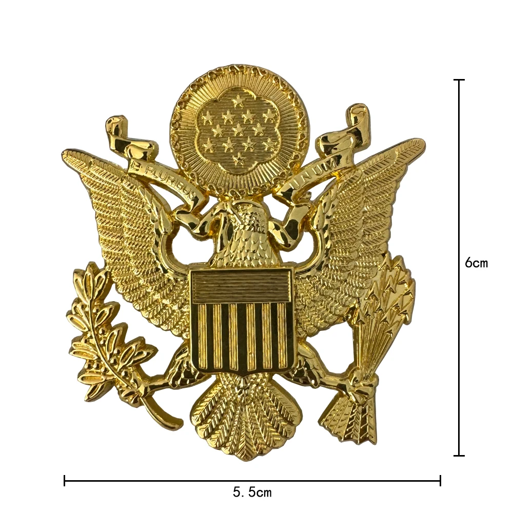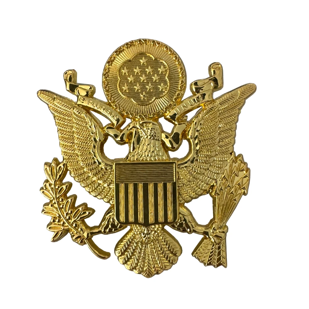Esta insignia de gorra es la insignia de metal del sombrero de la Fuerza Aérea de EE. UU. durante la Segunda Guerra Mundial. La insignia del sombrero está hecha de metal, tiene un revestimiento dorado y el color general es muy brillante. La insignia en el medio del sombrero es un símbolo de águila, que también es un símbolo simbólico de la Fuerza Aérea de EE. UU. La forma fija del emblema de la gorra es del tipo de hebilla de tornillo, lo que no causará daño al usuario después del tratamiento posterior, y es muy fuerte de usar en el sombrero, porque es de metal, por lo que la versión general es muy hermosa. Como decoración es una muy buena elección.