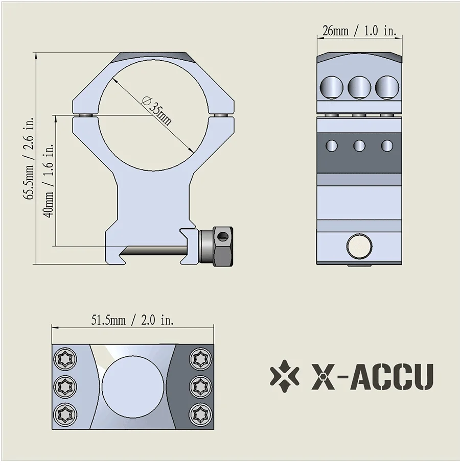 Anillos de alcance de perfil alto X-ACCU de 35 mm Modelo: SCTM-32 35 mm de diámetro, un par, seis pernos por anillo, resistente, perfil alto 40 mm 1,6 '', fabricado con CNC