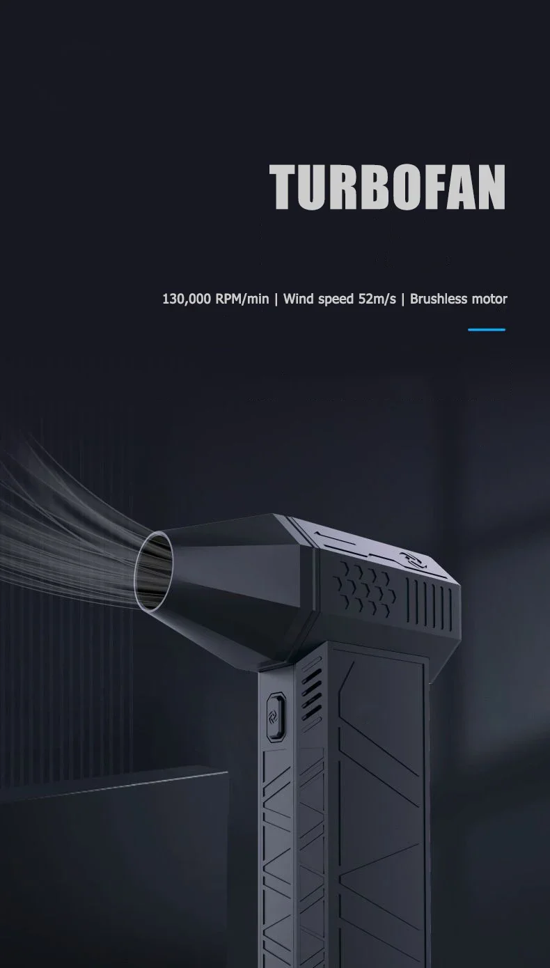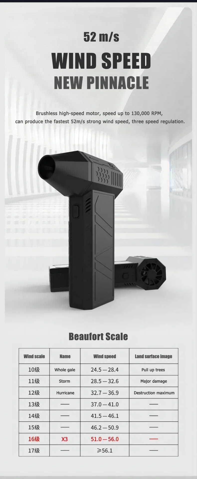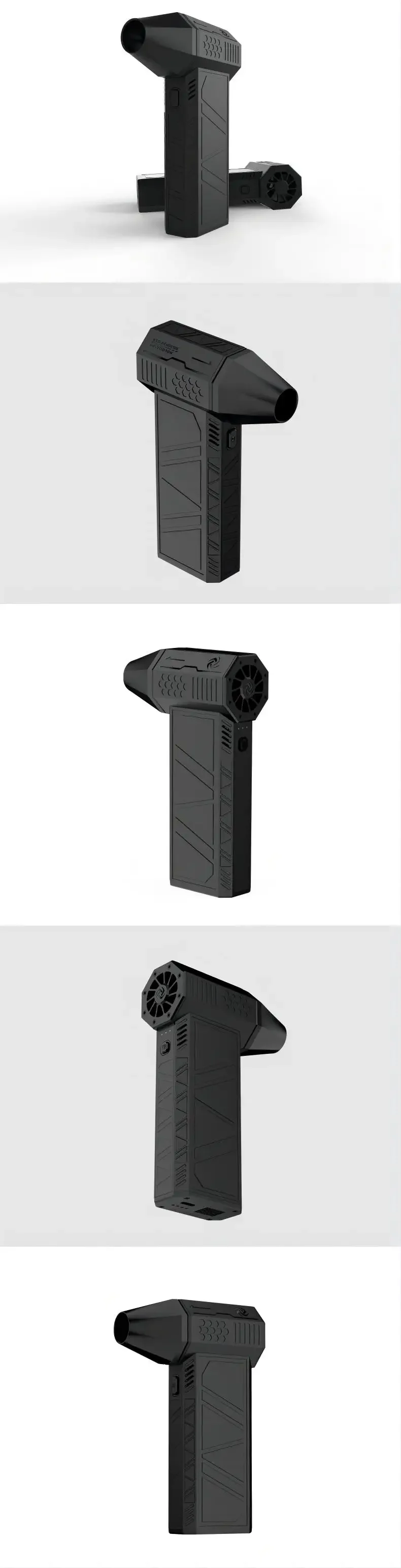 1.Componentes de alta calidad: este mini ventilador turbo jet adopta rodamientos de alta velocidad importados de súper alta calidad, una turbina de metal CNC nueva, un motor sin escobillas y un motor enrollado a mano.2.Velocidad del viento súper fuerte: capaz de generar presión y velocidad superiores a 52 metros por segundo.La máquina tiene cuatro branquias de tiburón que disipan activamente el calor a través de las salidas de aire, expulsando eficazmente el aire caliente de la cabina y brindando protección para un funcionamiento duradero.3.Regulación de tres velocidades: viento fuerte de primera marcha, huracán de segunda marcha, huracán súper fuerte de tercera marcha, fuerza del viento de hasta 16 niveles4.Portátil y compacto: con su tamaño mini y diseño liviano, es muy cómodo de llevar.El cuerpo compacto del ventilador turbo frenzy hace que sea fácil de transportar y de usar en el exterior.7.Operación fácil de usar: adopción de regulación de tres velocidades con indicador luminoso.El diseño fácil de usar de los turboventiladores portátiles garantiza una fácil funcionalidad.Además, la placa de carga también cuenta con funciones de protección de carga y protección contra sobrecalentamiento seguras y confiables.El motor interno sin escobillas puede alcanzar altas velocidades de hasta 130000 RPM (voluciones por minuto).8.Uso: soplado y succión con colchón de aire, limpieza de equipos informáticos, soplado de polvo industrial, combustión de carbón para soportar la combustión, soplado de automóviles y nieve, filmación de estudios de películas y fabricación de viento, secado de mascotas y muchos otros usos.Especificaciones: