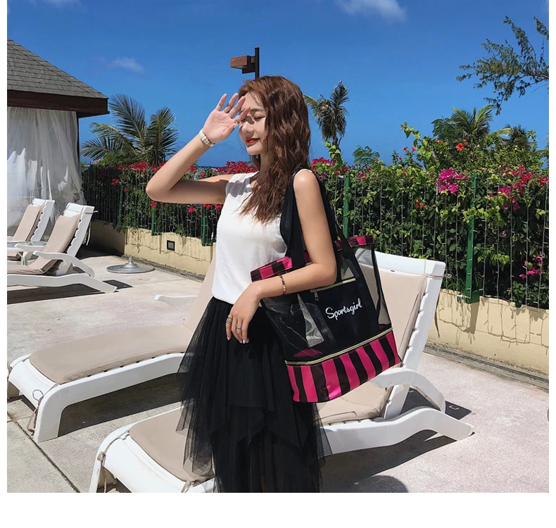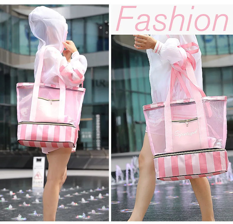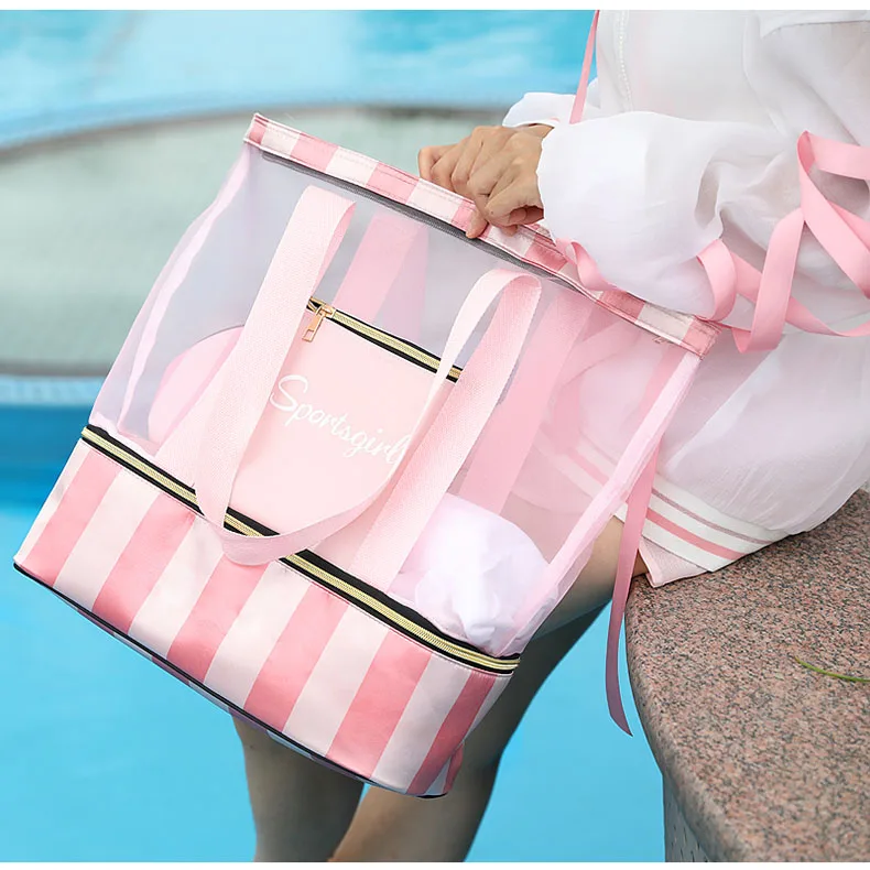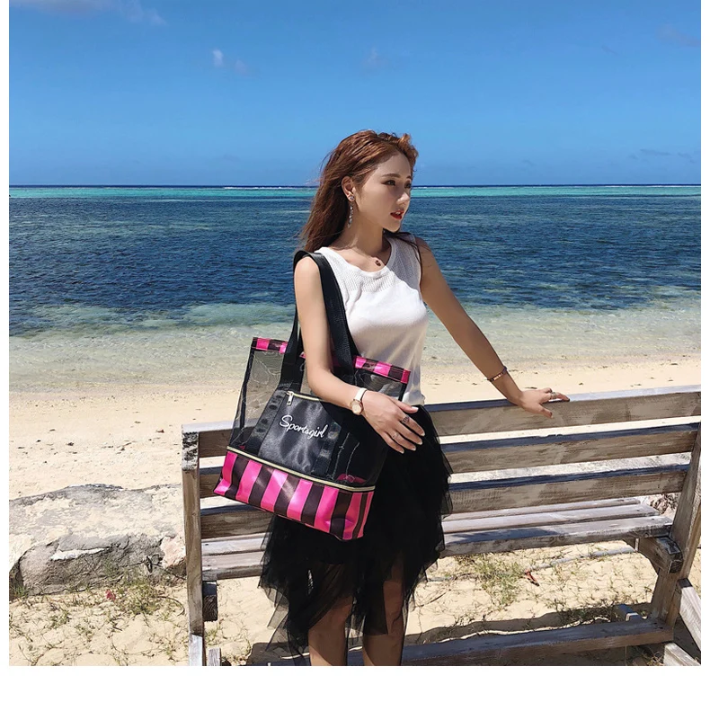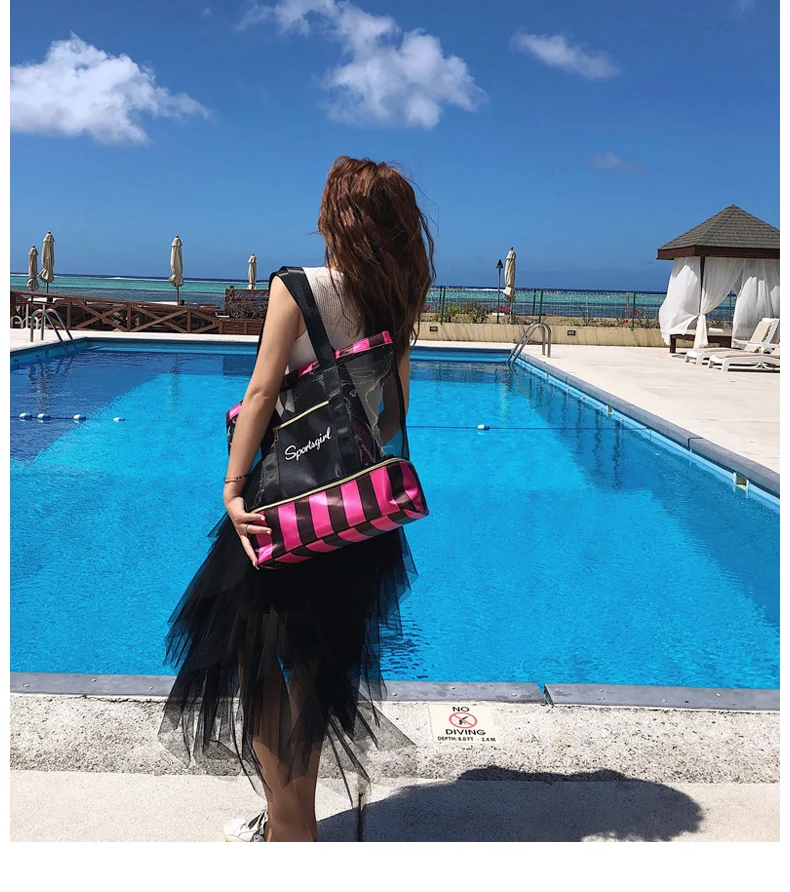 Uso: Bolso multifuncional HanBolso,Bolsa de traje de baño, bolsa de natación, transparente, red de malla para nadar, bolsa de playa para piscina, bolsa de hombro