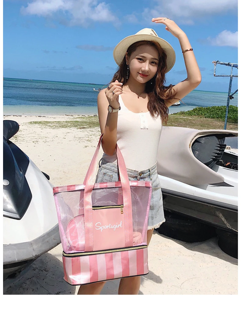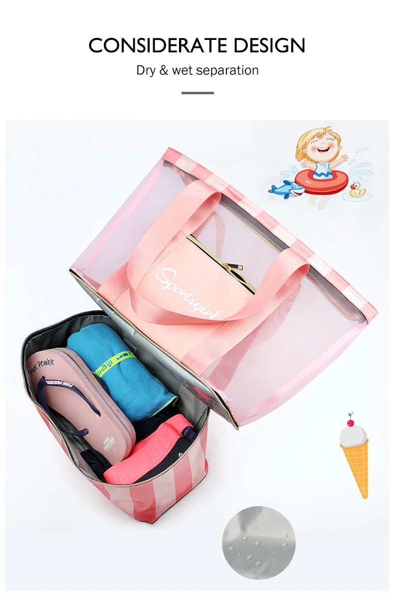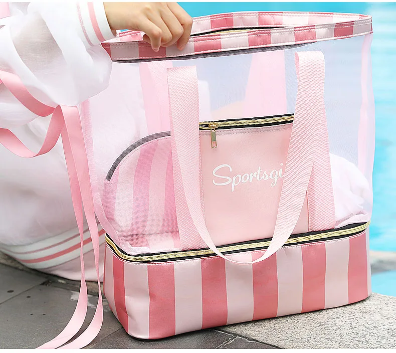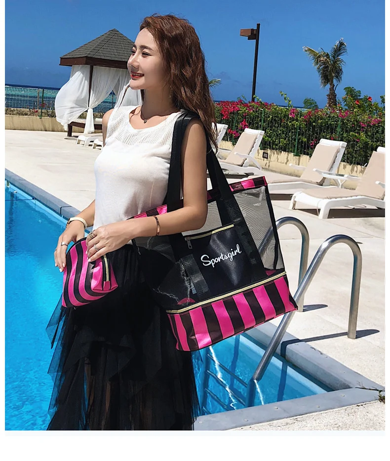 Uso: Bolso multifuncional HanBolso,Bolsa de traje de baño, bolsa de natación, transparente, red de malla para nadar, bolsa de playa para piscina, bolsa de hombro