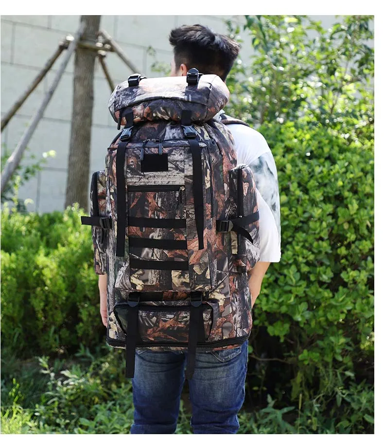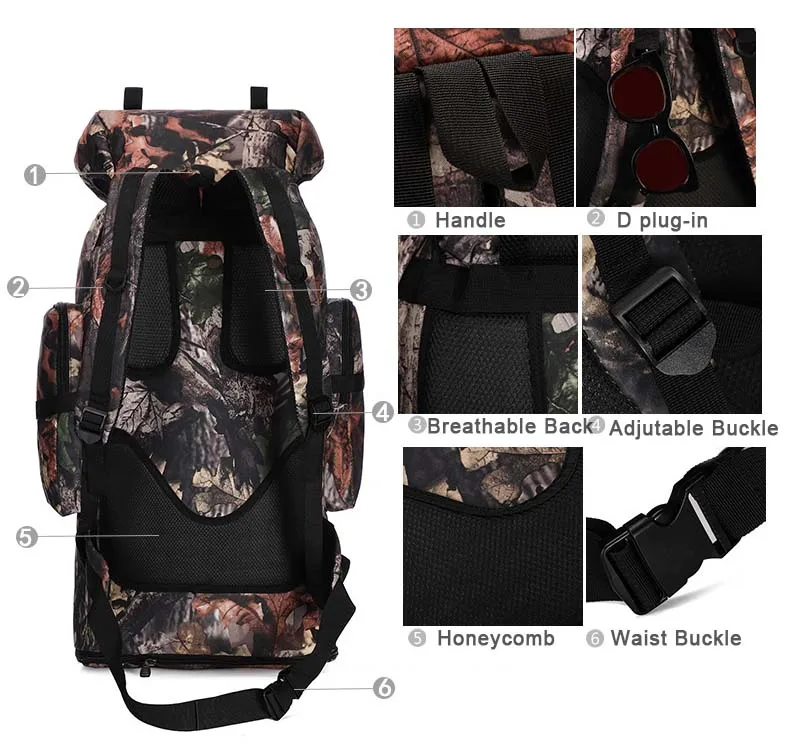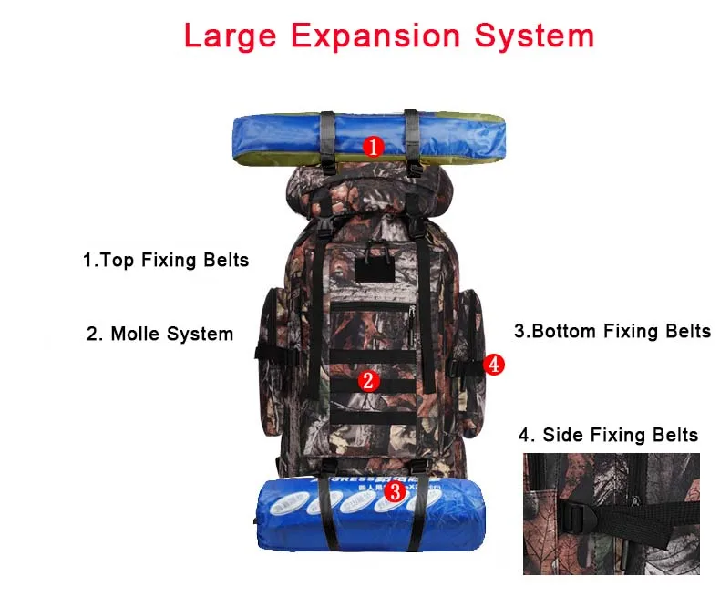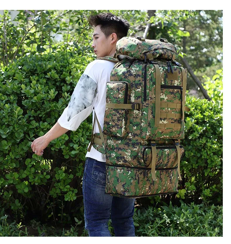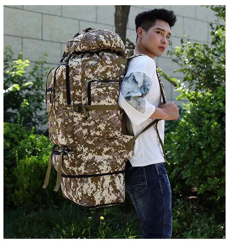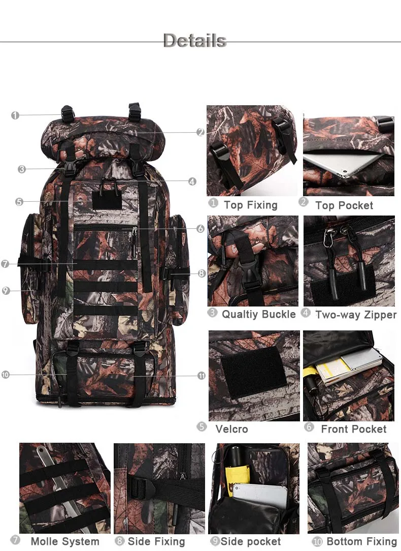 Material: nailon impermeable de alta calidadTamaño: 40cm x 30cm x 75cm(LxWxH)Tamaño después de la expansión: 40cm x 30cm x 90cm(LxWxH)Color: negro, hoja de la jungla ACU Desert Digital, etc.Uso: mochila de viaje, mochilas de montañismo, mochila de camuflajeOcasión: senderismo, camping, ciclismo, montañismo, viajes, escalada