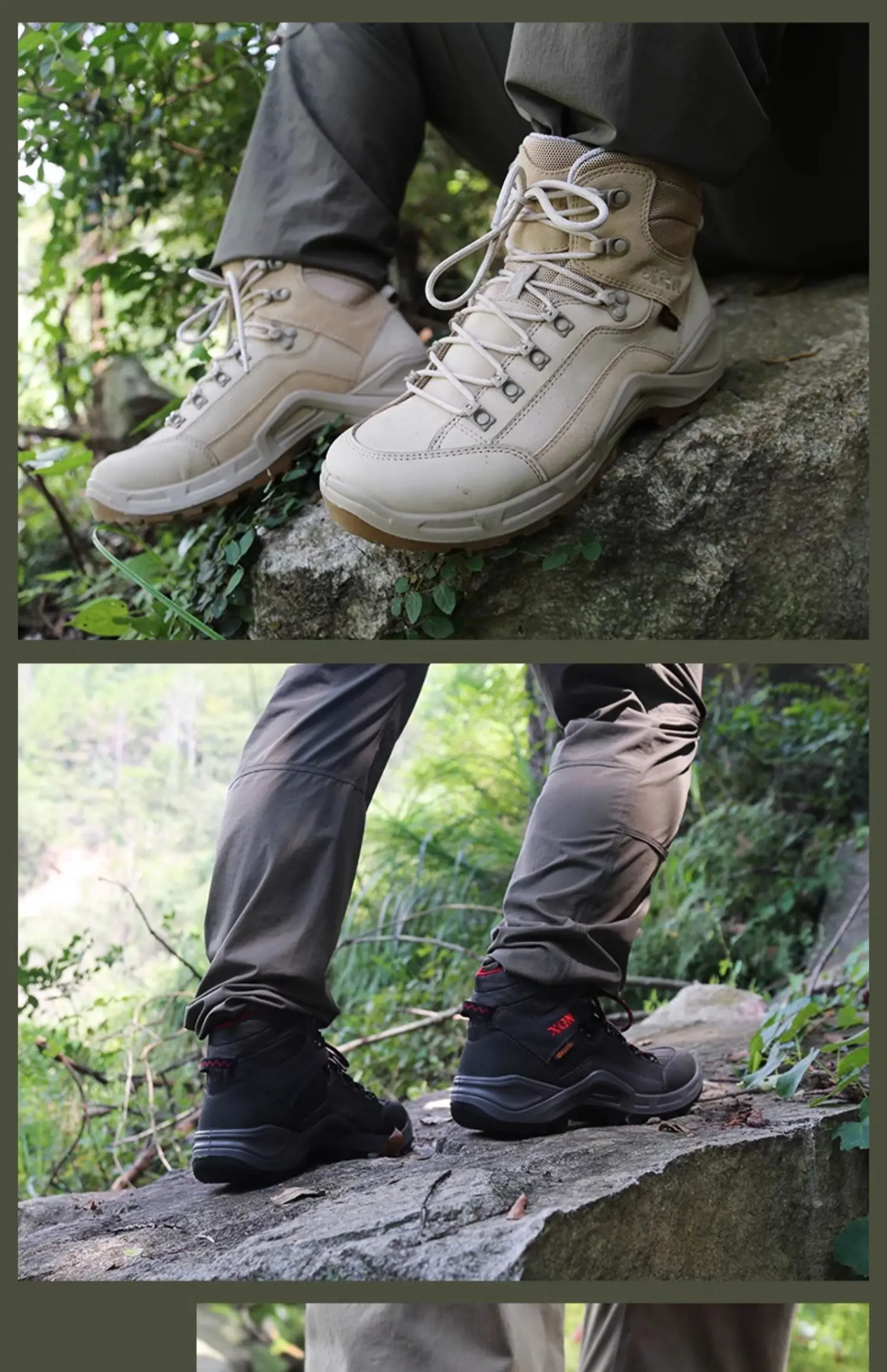 XGN EVENT-zapatos de senderismo impermeables para hombre y mujer, botas de caza tácticas para combate en el desierto, botines de trekking, zapatillas de deporte de cuero cálidas