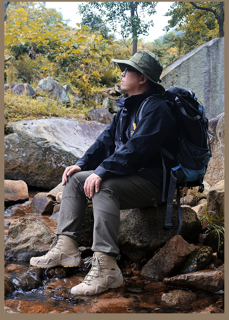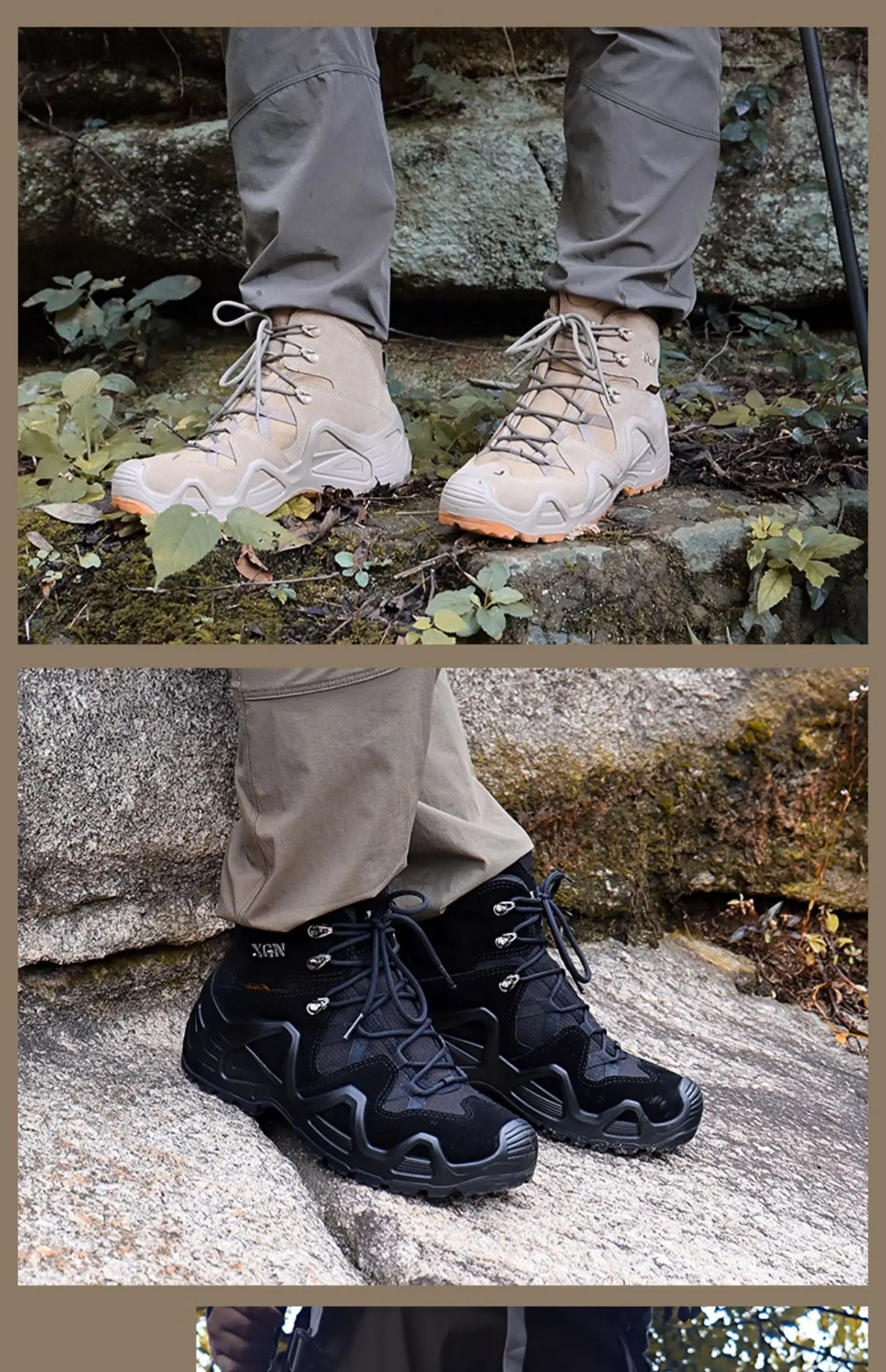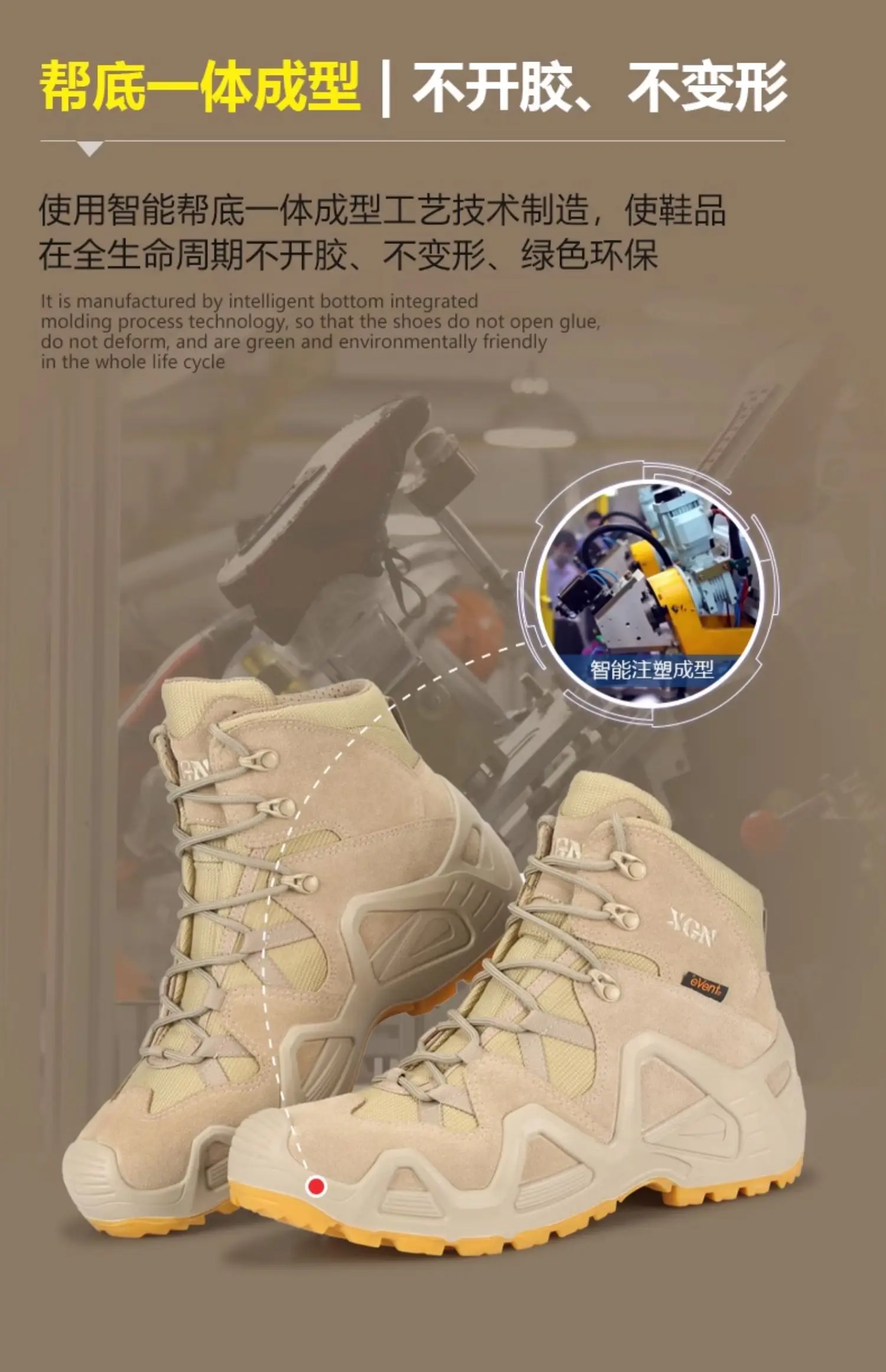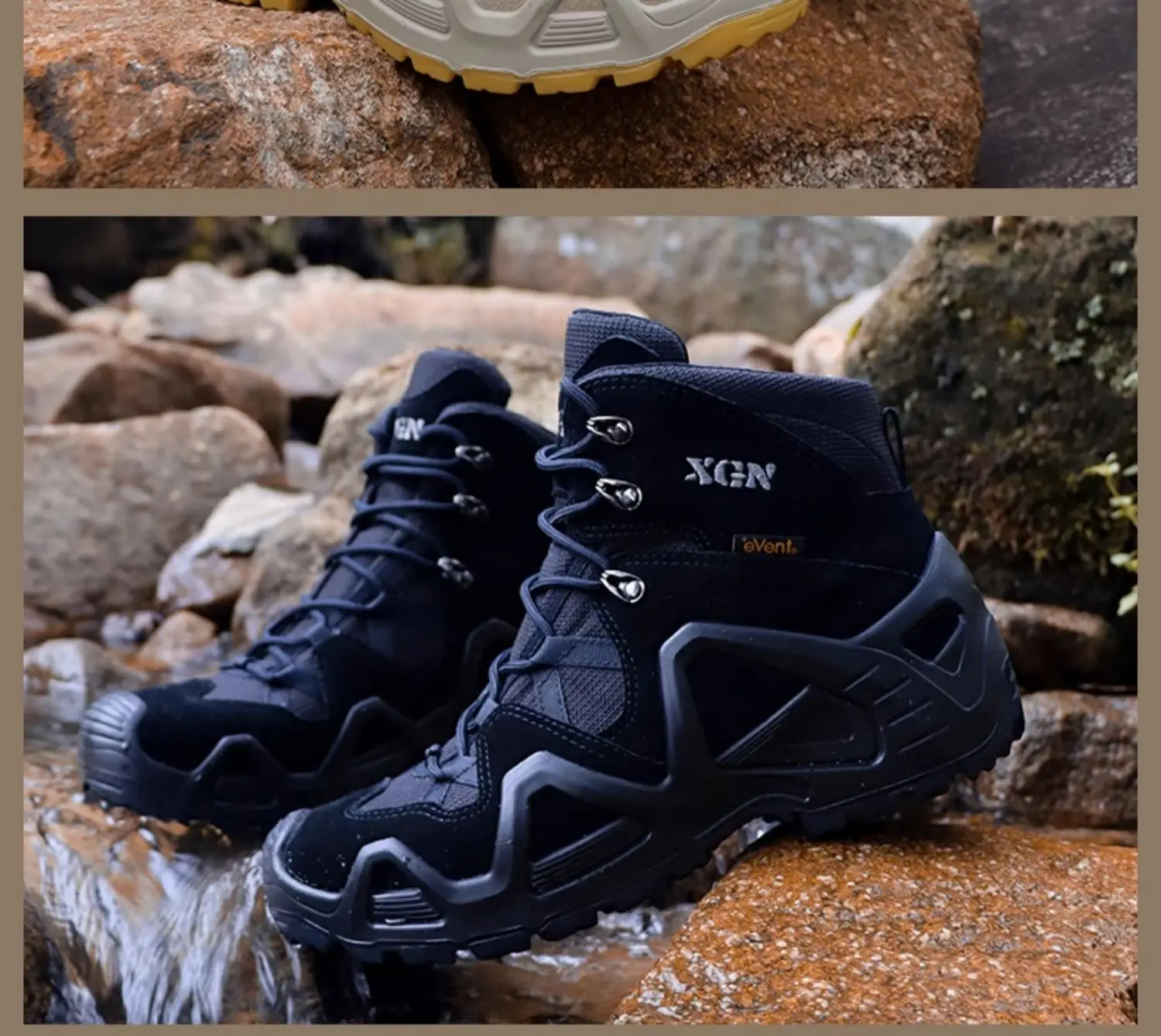 XGN-zapatos de senderismo impermeables de piel de vaca para hombre, zapatillas transpirables de montaña, botas de caza, botas tácticas de combate y trekking en el desierto