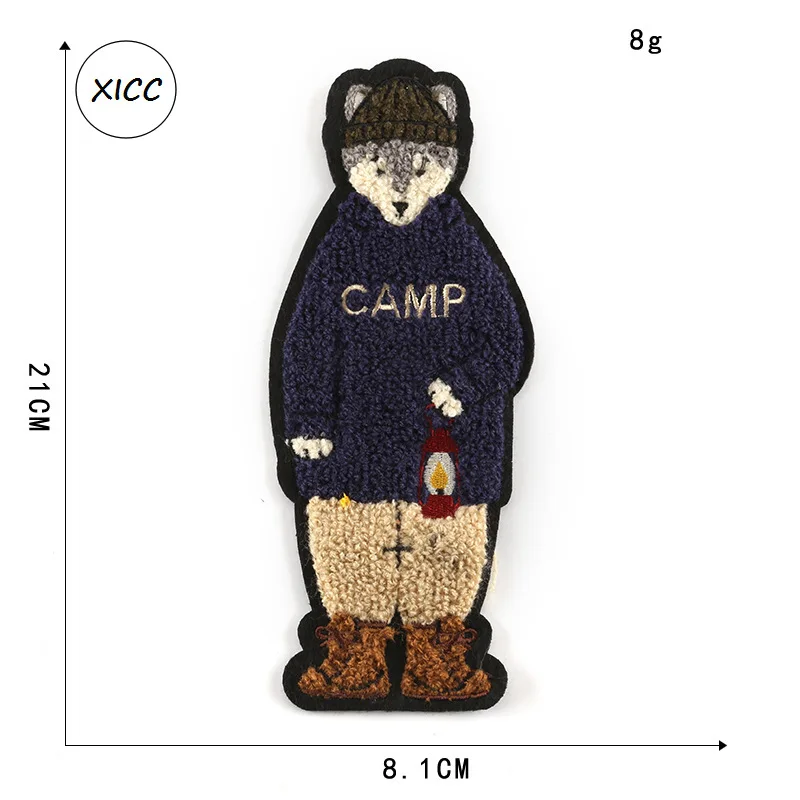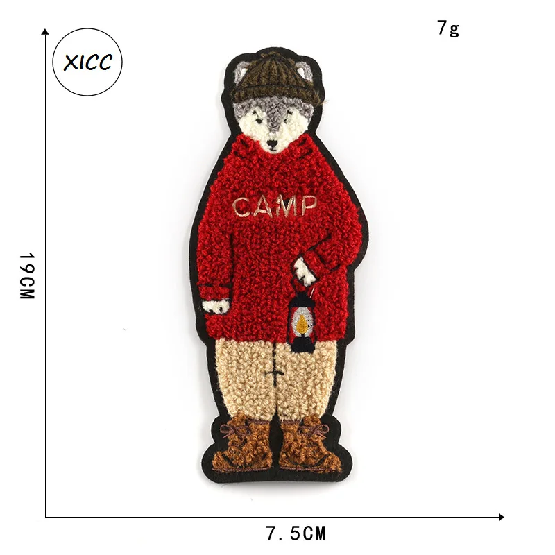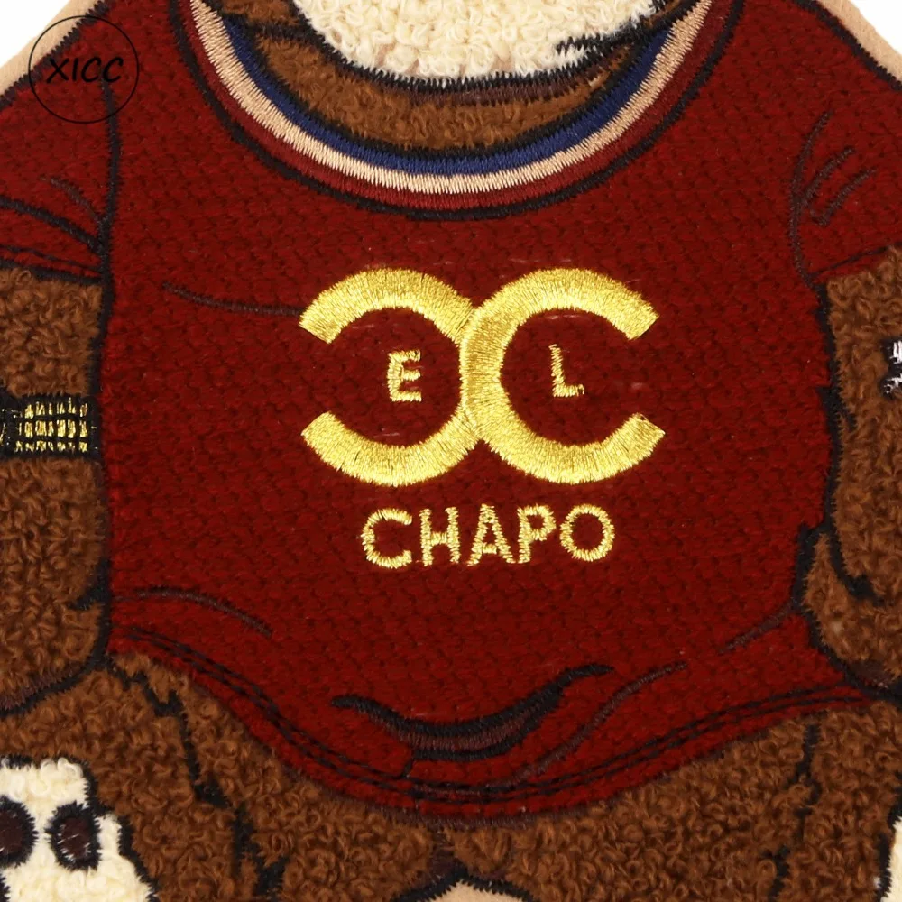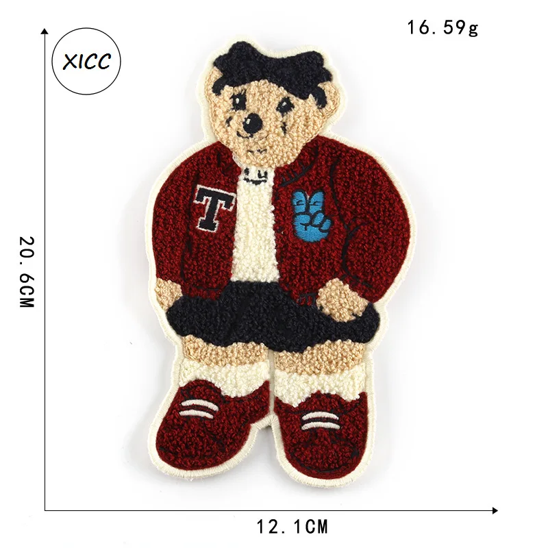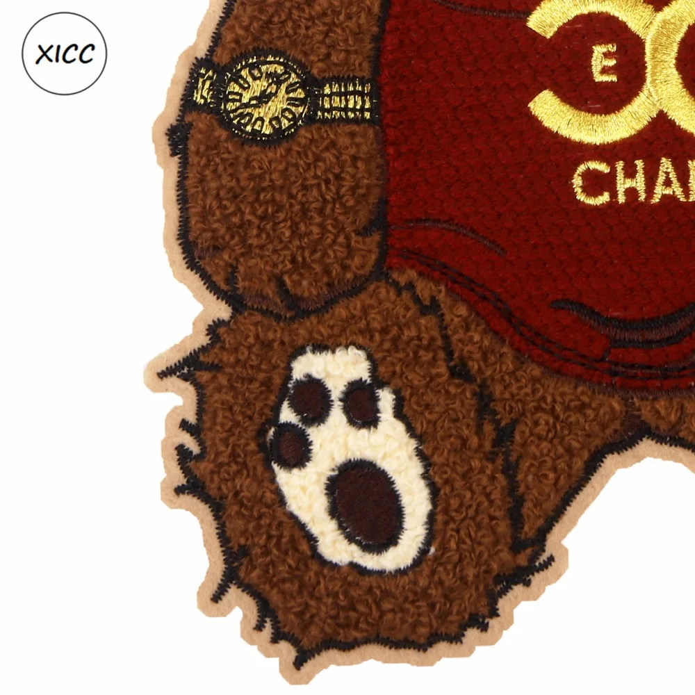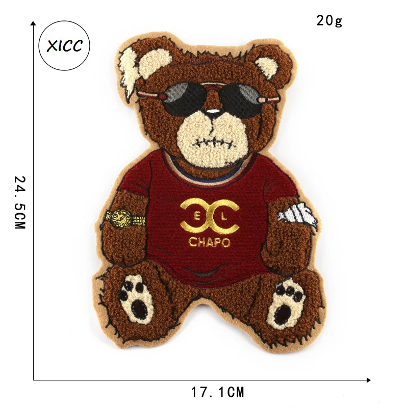 XICC Toalla de gran tamaño bordado Oso de dibujos animados parche personalizado Chenille coser en parche Super Cool gafas de sol Patchwork pegatina apliques