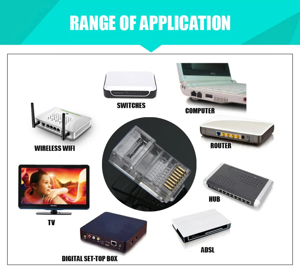 Este es un conector CAT5e estándar sin blindaje de alta calidad, compatible con CAT5