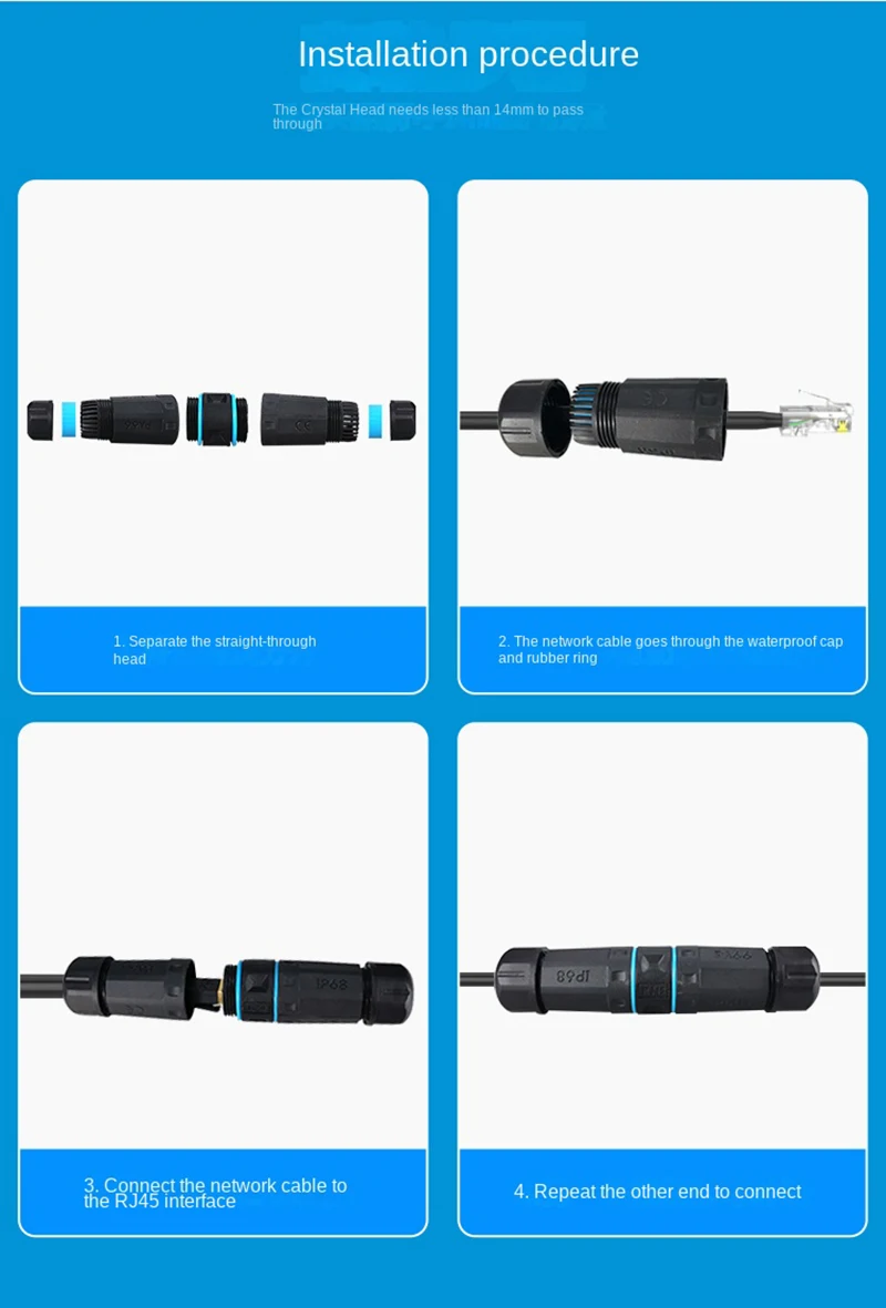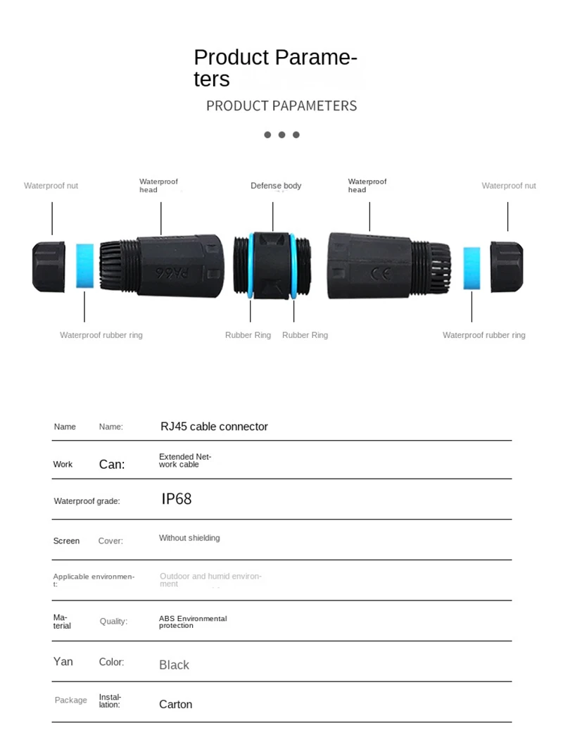1. 3U chapado en oro, para conectar el cable Ethernet cat5e, contactos, Red mejor y más rápida.2. Nuevas estructuras, nuevo abrasivo, más pequeño, ahorra espacio, instalación rápida.3. Utiliza materiales ecológicos de nailon PA66, ignífugos/anti-UV y vida más larga.4. Delantal impermeable azul, hermoso IP68 impermeable.5. Cubierta antipolvo dentro de las almohadillas de pegamento, no se cae, no se filtrará