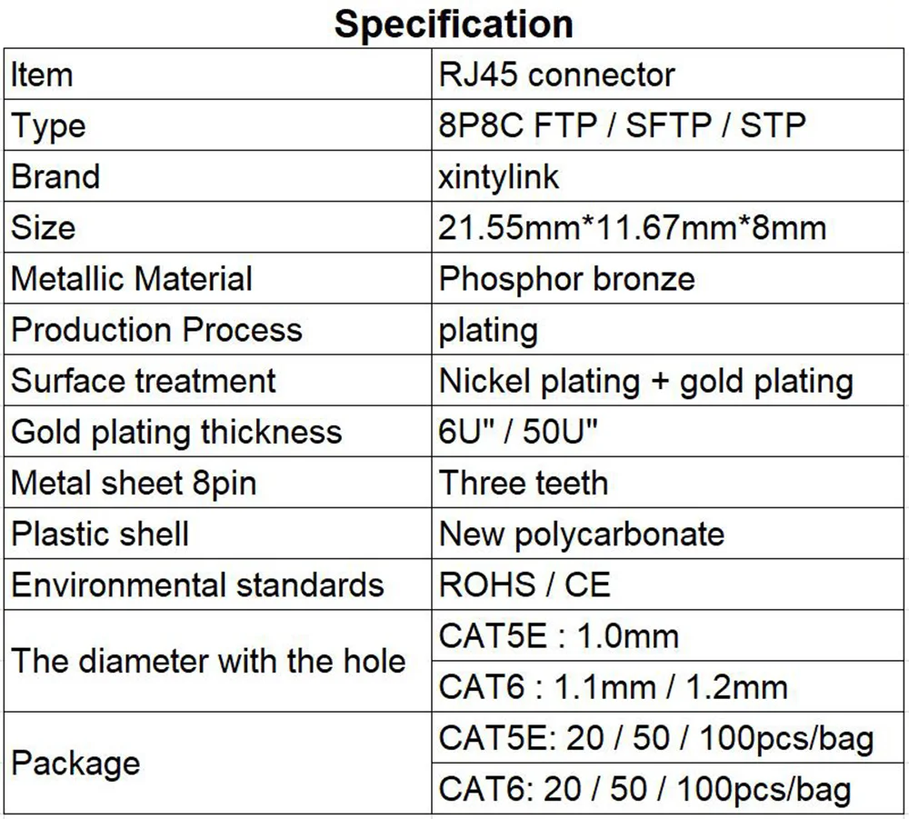 Siempre que se venda el conector rj45 en nuestra tienda, si los terminales de metal están oxidados o oxidados, proporcionamos reemplazo gratuito del mismo número de conectores nuevos, la fecha límite es para siempre