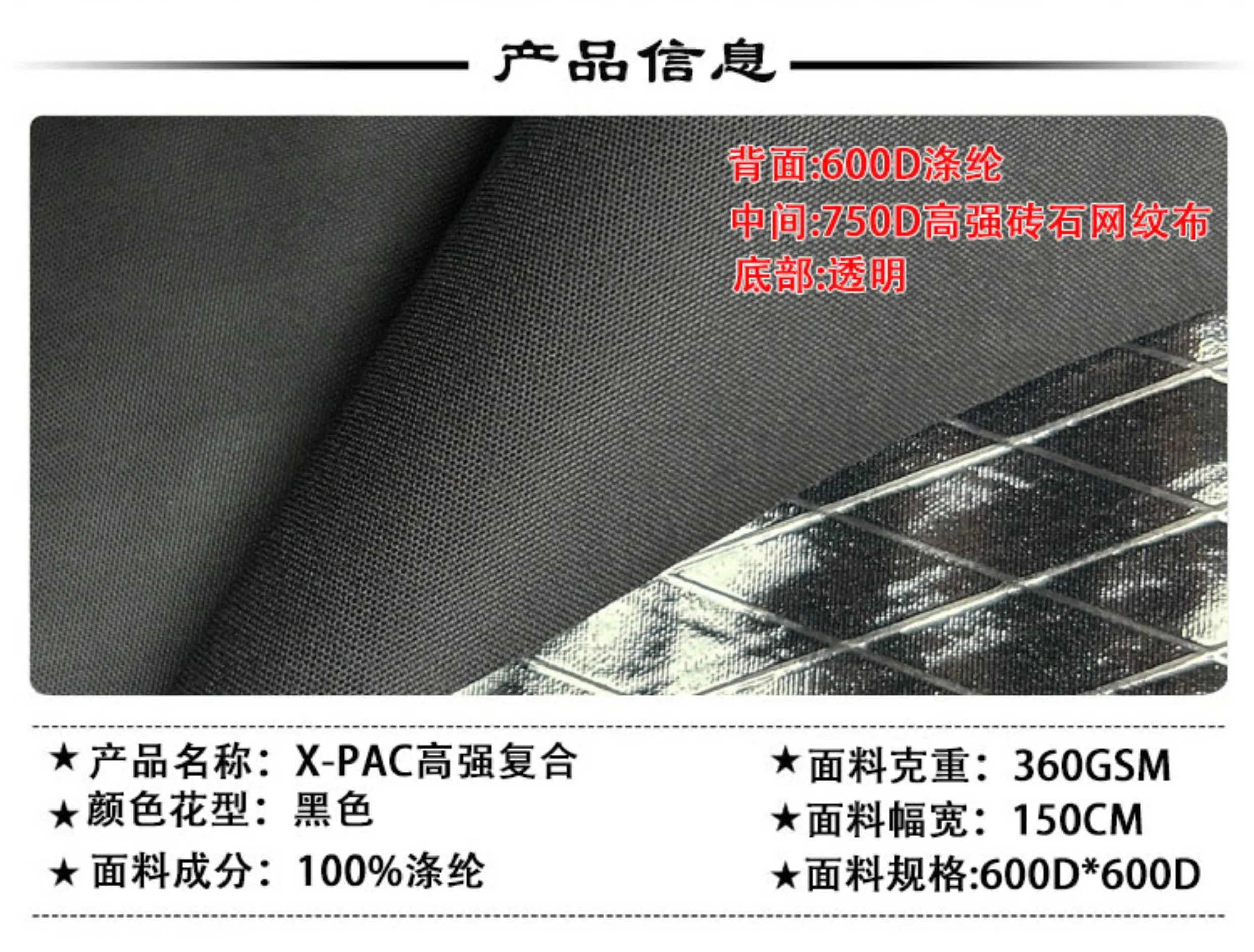 XPAC poliéster 600D compuesto de alta resistencia, nailon 500D negro impermeable bolsa funcional telas tela resistente a la abrasión