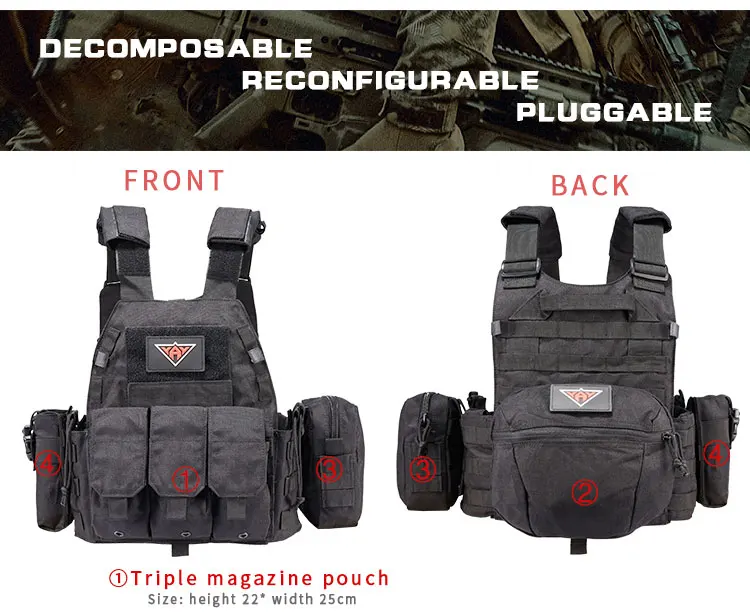 Yakeda 6094 chalecos portador de placa chaleco camuflaje Molle Nylon chaleco Modular chalecos tácticos caza al aire libre hombres chaleco