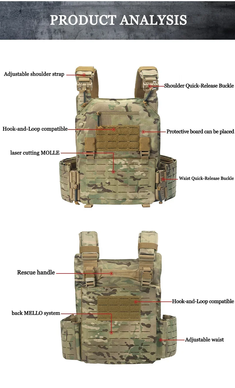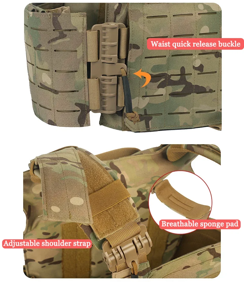 YAKEDA 900D Chaleco táctico de entrenamiento de caza al aire libre con sistema molle cortado con láser de liberación rápida resistente al desgaste hecho de material de nailon