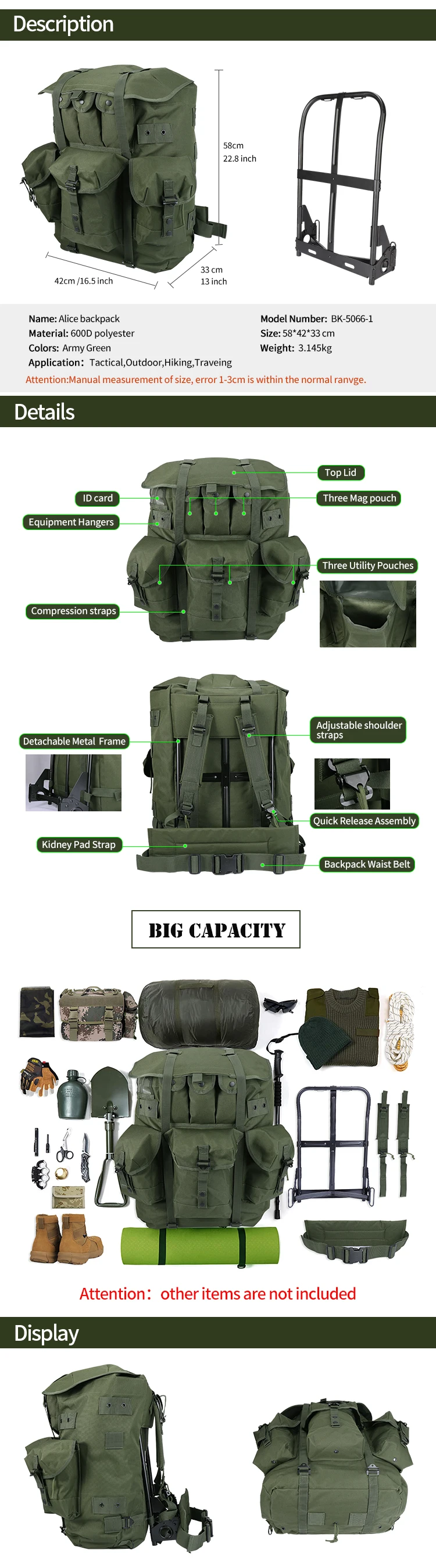 YAKEDA Alice Pack bolsa de senderismo al aire libre mochila de marco grande mochila táctica caza