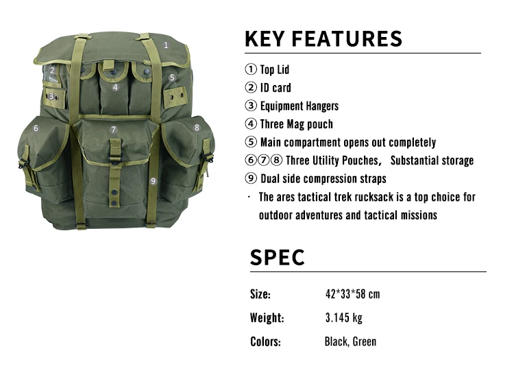 YAKEDA Tactical Iron Frame Bag Outdoor Camping Camping Hiking Polyester Large Capacity Backpack Supplies Tactical Backpack