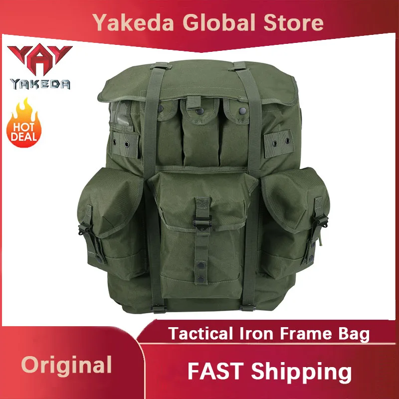 YAKEDA Tactical Iron Frame Bag Outdoor Camping Camping Hiking Polyester Large Capacity Backpack Supplies Tactical Backpack