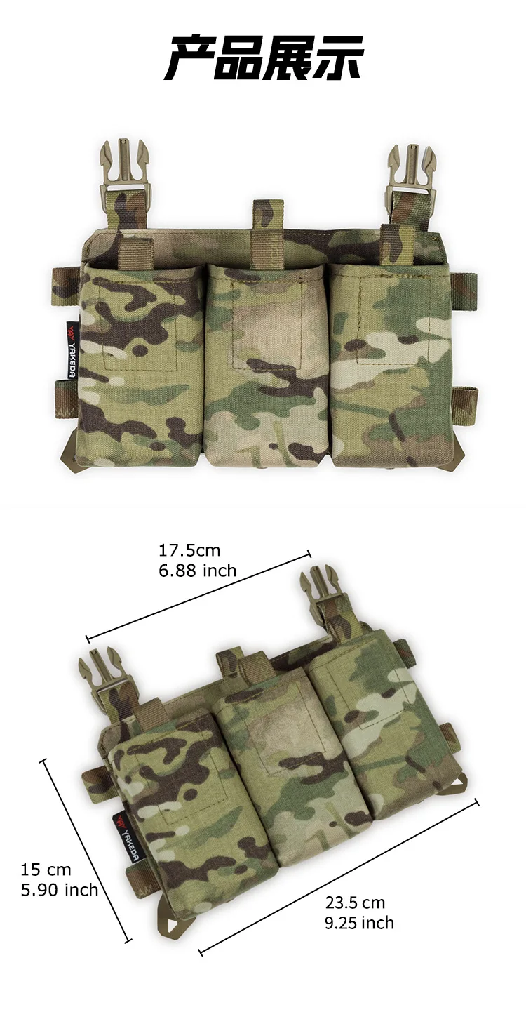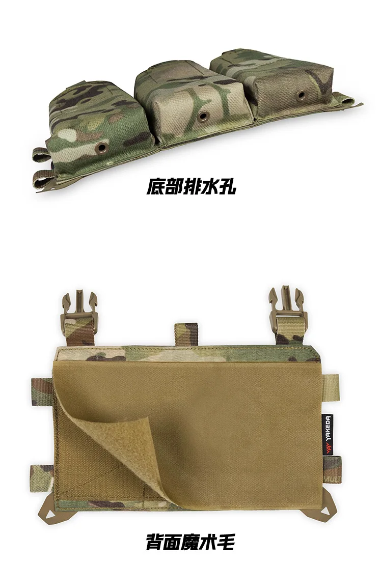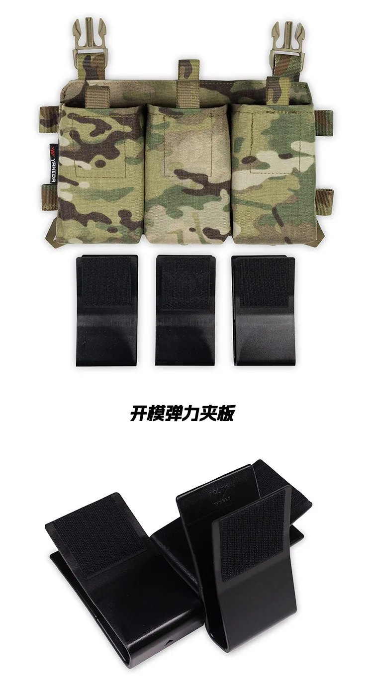 ADAPTADORES CAMPATIBLES: Accesorio de bolsa triple para cargador Cara de gancho en la parte posterior con hebillas UTX para configuración en mini aparejo de pecho y chaleco táctico para exteriores con adaptadores compatibles.