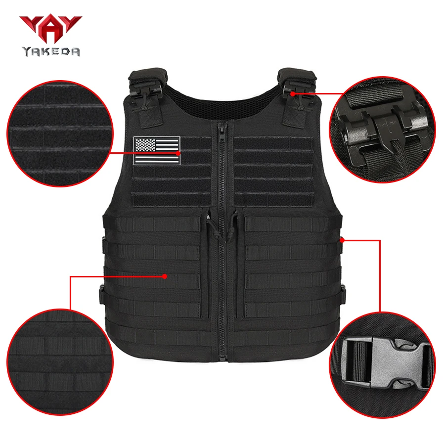 YAKEDA chaleco de caza multifuncional resistente al desgaste con hombros de desmontaje rápido sistema MOLLE chaleco de caza con cintura ajustable