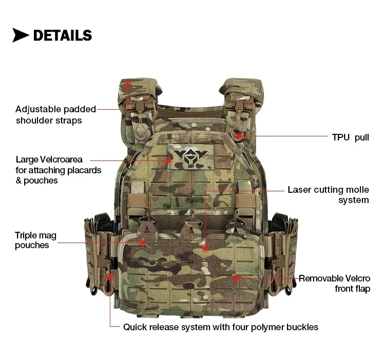 YAKEDA 6094 Chaleco de combate Caza al aire libre Hombro protector, ajustable Airsoft Plate Carrier 1000D Chaleco táctico al aire libre