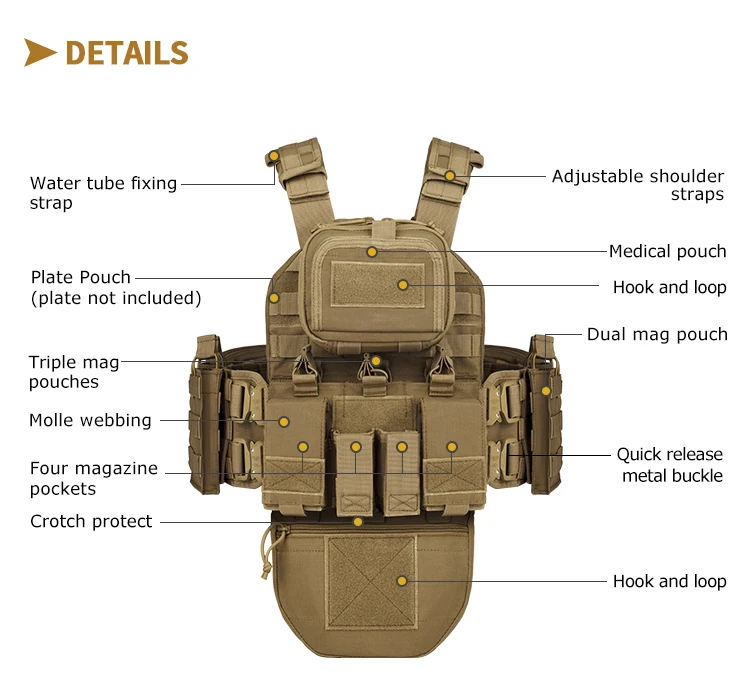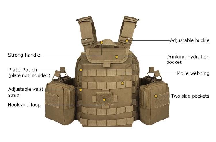 Yakeda-Chaleco de combate de entrenamiento táctico, portador de placa táctica al aire libre, Modular, multifuncional, Molle de nailon, CS, 1000D