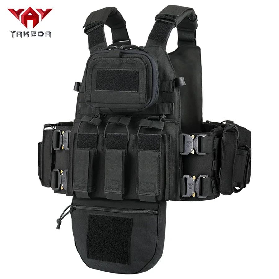 YAKEDA Chaleco de entrenamiento multifuncional de protección completa, hebilla de serpiente de metal MOLLE, liberación rápida, Camuflaje al aire libre