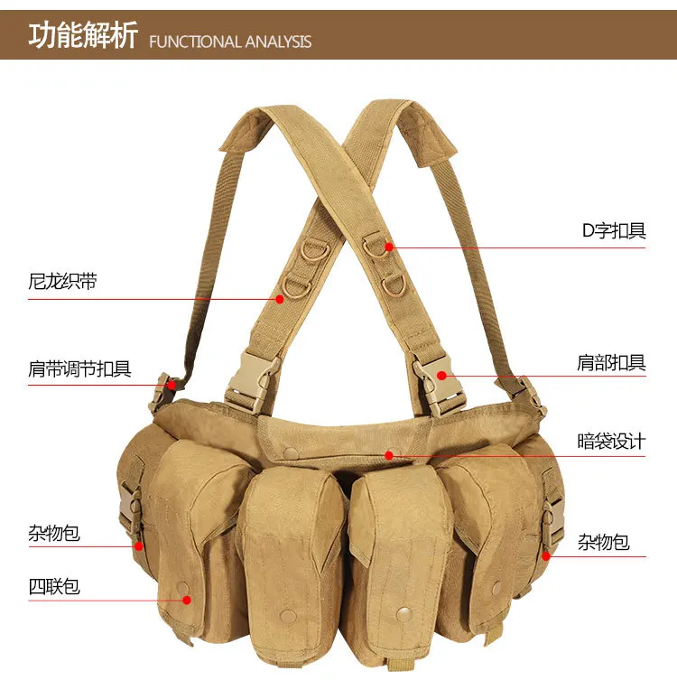 YAKEDA-Chaleco táctico de caza Airsoft, aparejo de pecho de munición de alta capacidad, 4 bolsas para revistas, accesorios de tiro Molle