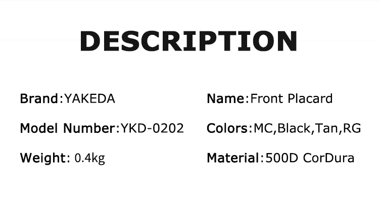 Chaleco táctico Yakeda Expansión Multi-módulo Universal Hebilla Chaleco Expansión Delantero Multifunción Triple Panel frontal