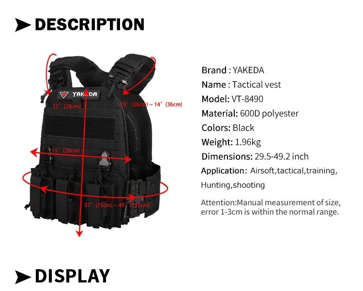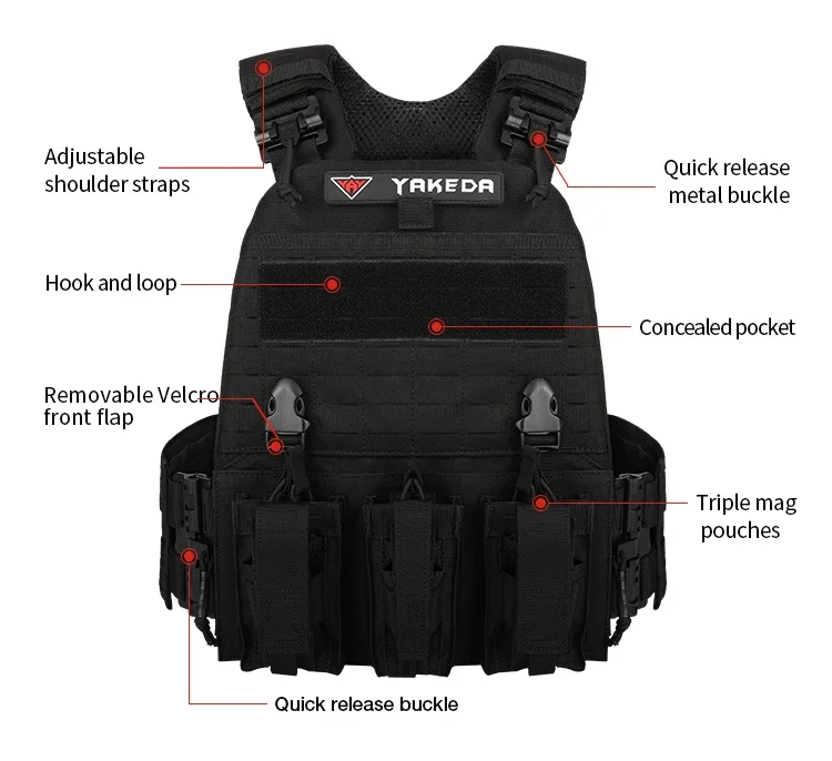 YAKEDA-chaleco táctico de liberación rápida para hombres, portador de placa Molle, Airsoft, Swat, policía, caza, combate