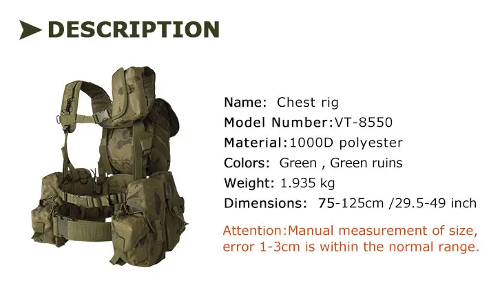 YAKEDA-Chaleco táctico para el pecho, aparejo MOLLE para combate, senderismo al aire libre, caza, senderismo, mochila 3D, banda para el vientre duradera de secado rápido
